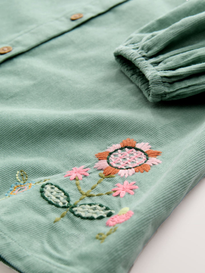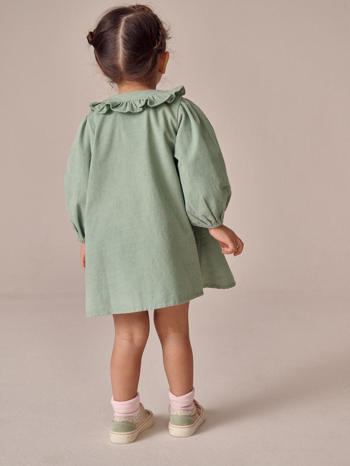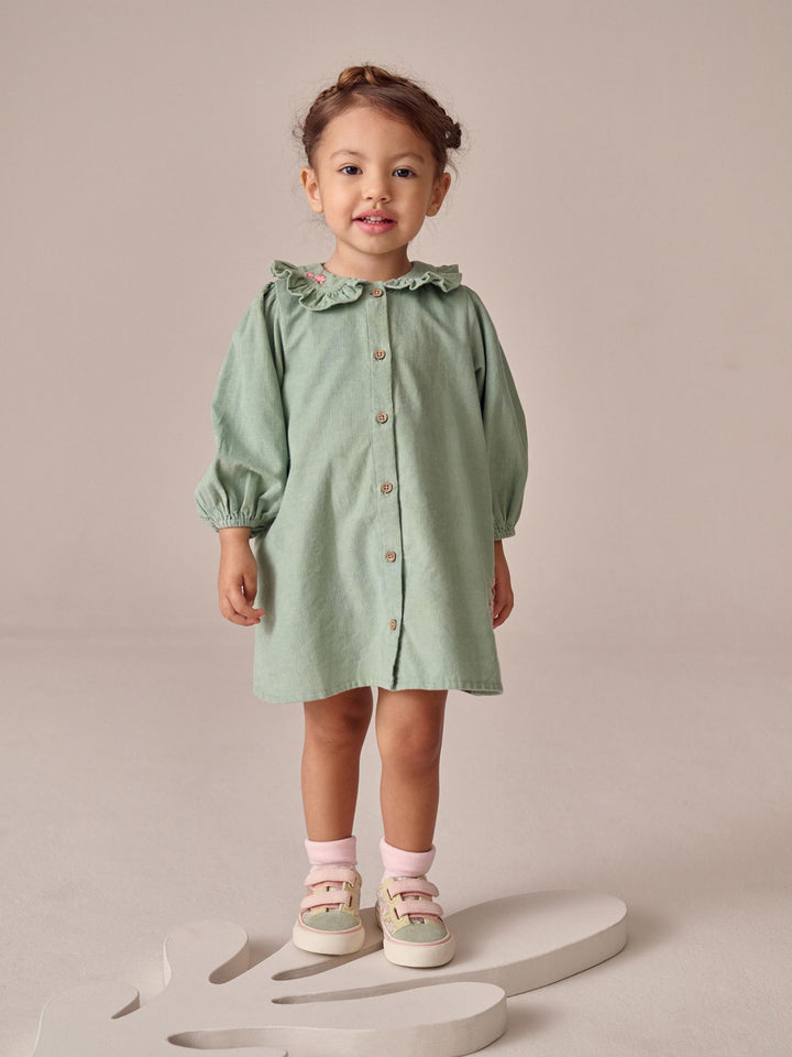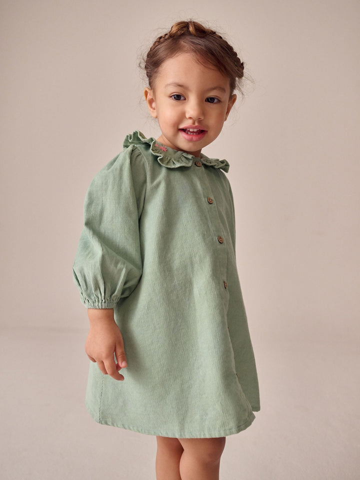 Sage Green Cord Long Sleeve Dress (3mths-8yrs)