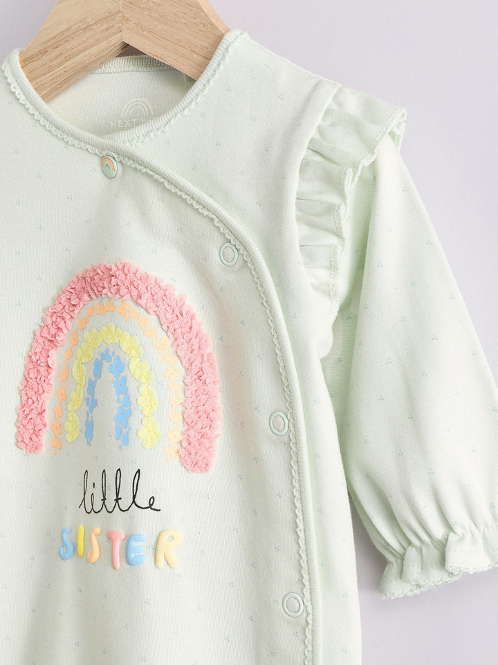 Sage Green Little Sister Baby Family 100% Cotton Sleepsuit (0-2yrs)