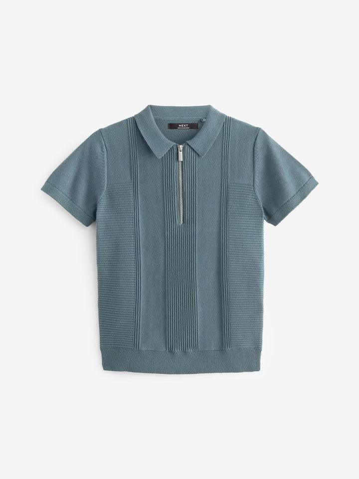 He'll look smart and stylish in this comfortable cotton slate grey knitted polo shirt, featuring a zip neck leading to a classic collar, a textured striped design and ribbed hems. Regular fit 100% Cotton Zip neck Classic collar Stripe design 100% Cotton. Country of Origin: Bangladesh