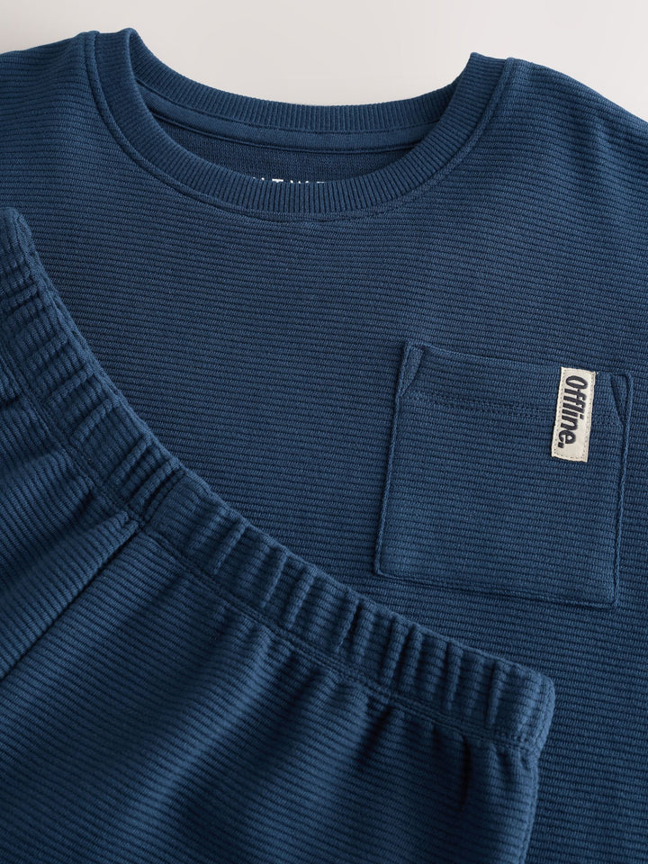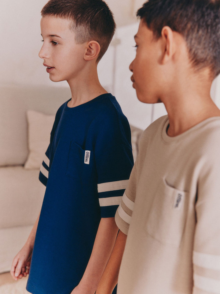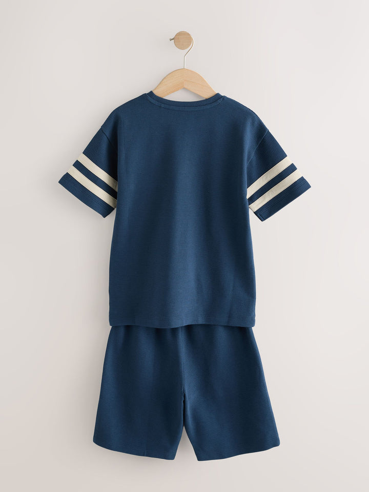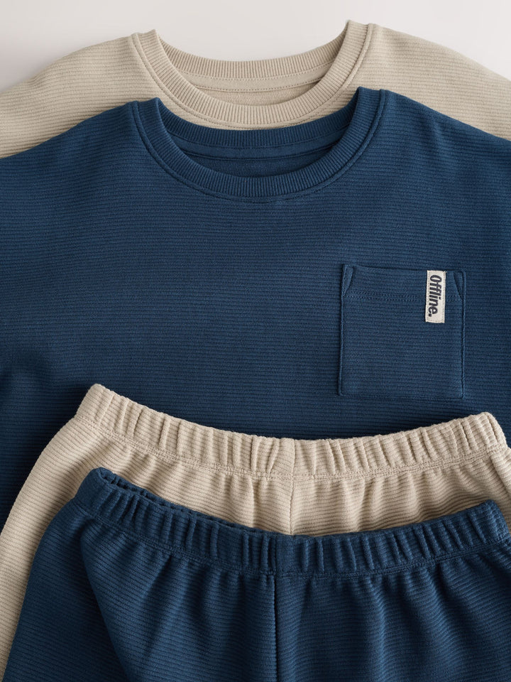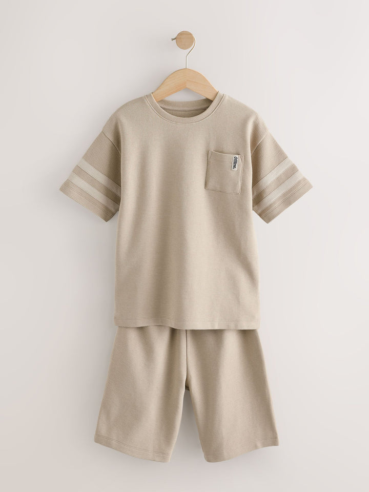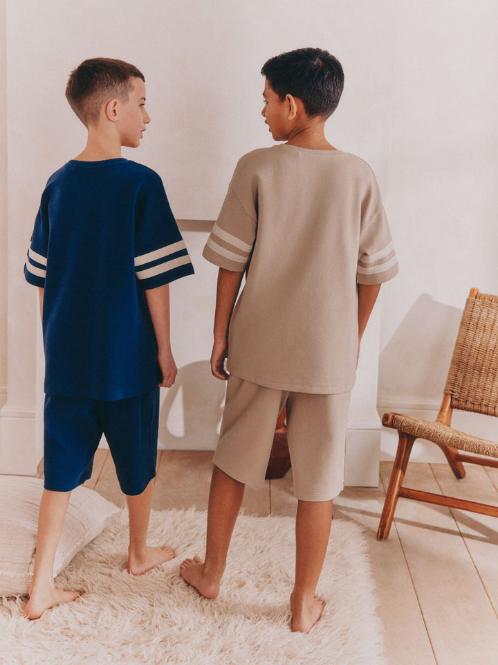 Stone/ Navy Blue 100% Cotton Short Pyjamas 2 Pack (3-16yrs)