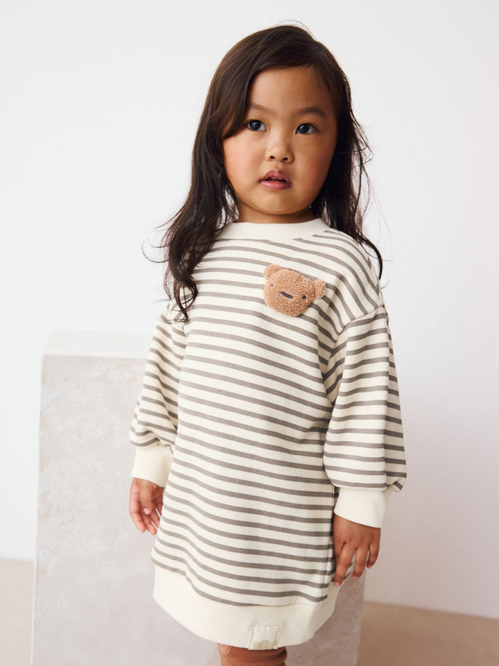 Striped Teddy Bear Relaxed Sweat Dress (3mths-7yrs)