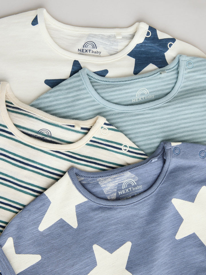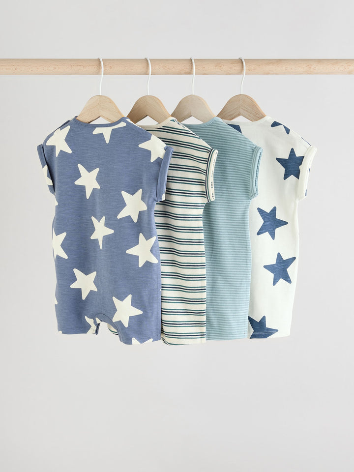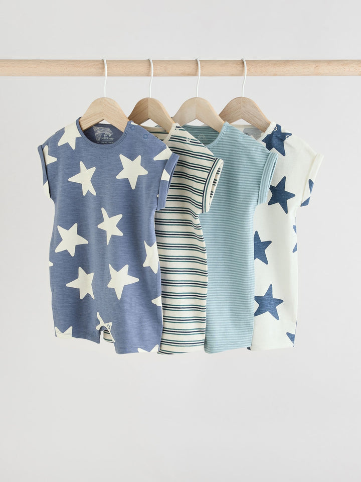 Teal Blue 100% Cotton Baby Rompers 4 Pack