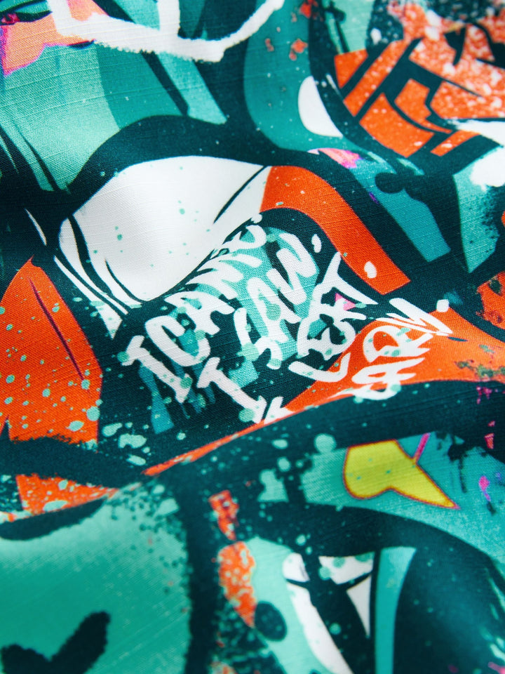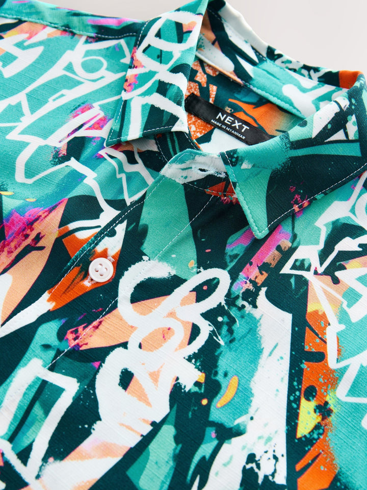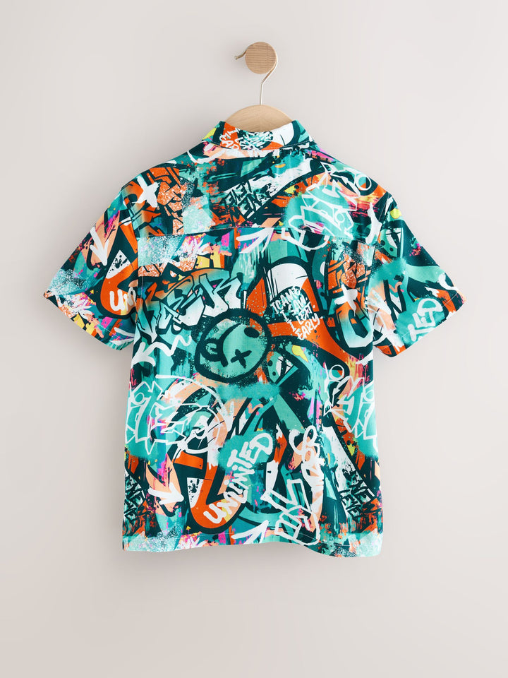 Teal Blue Short Sleeve Printed Shirt (3-16yrs)