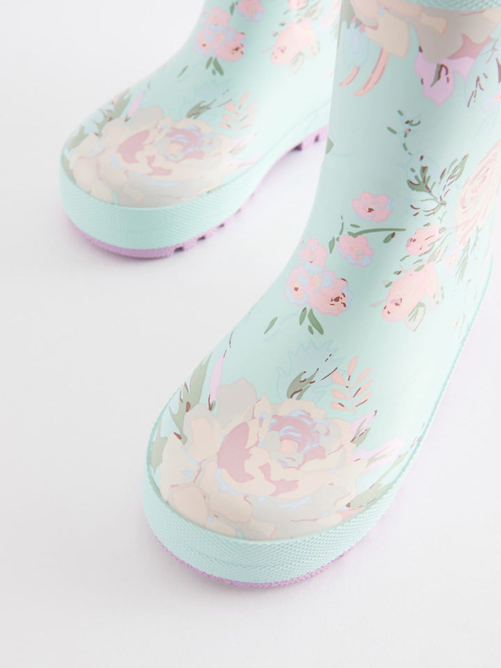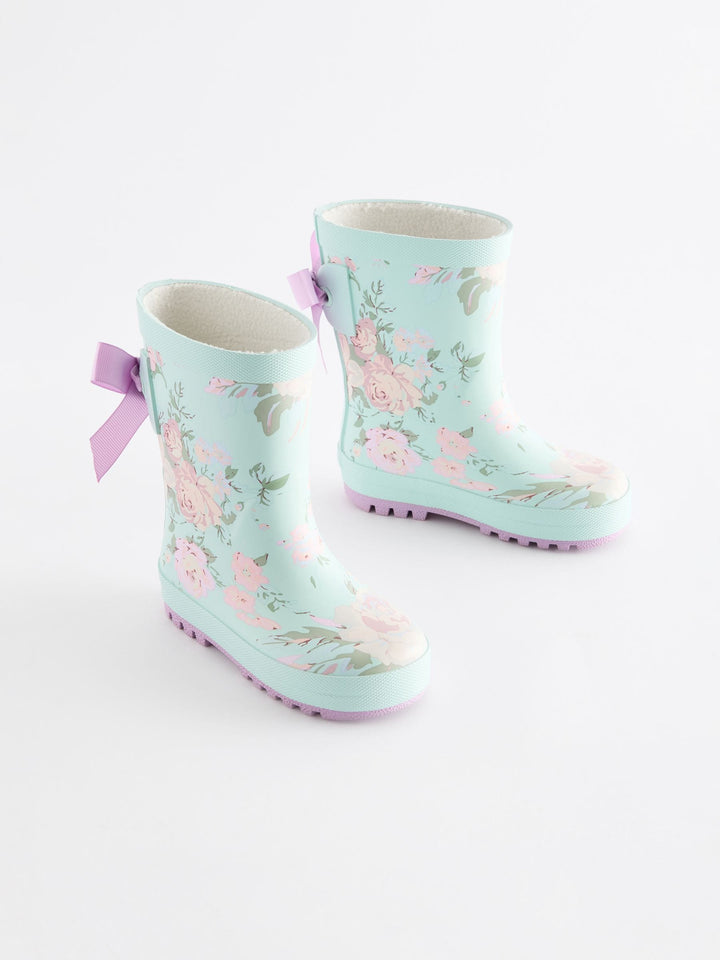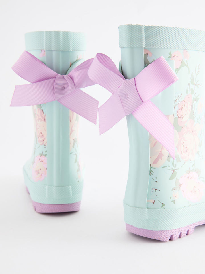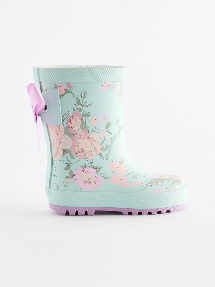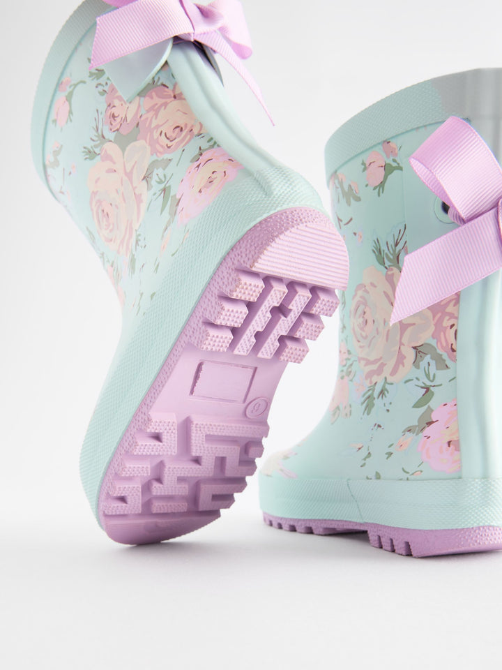 These wellington boots have a pretty design, featuring a floral print and bow detailing to the back, perfect for splashing around in. The boots have a breathable textile lining, finished with a slip-resistant sole. Slip-on Floral design Bow detailing Textile lining Slip-resistant sole Upper - Other Materials, Lining & Sock - Textile, Sole - Other Materials. Country of Origin: China