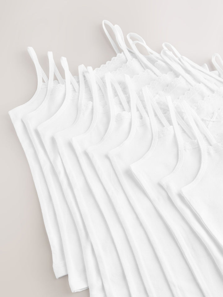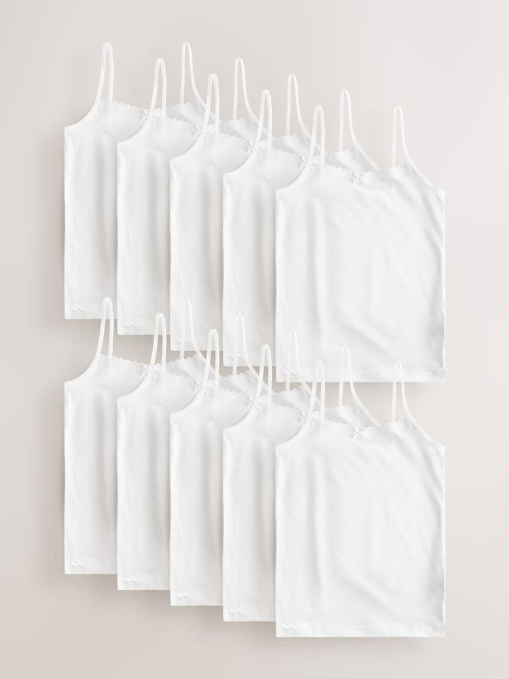 White 10 Pack Elastic Strappy Cami Vests (1.5-16yrs)