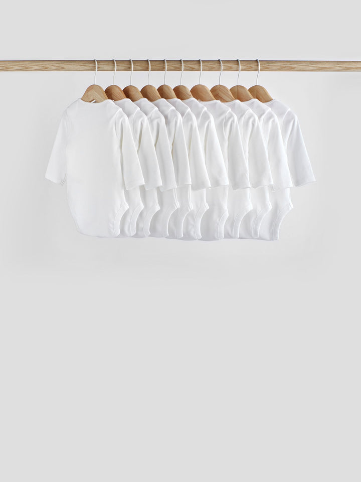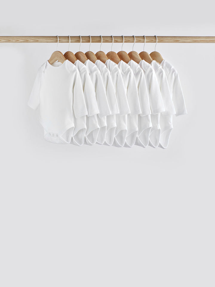 White 10 Pack Essential Baby Long Sleeve Bodysuits