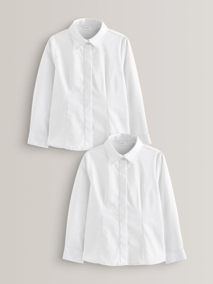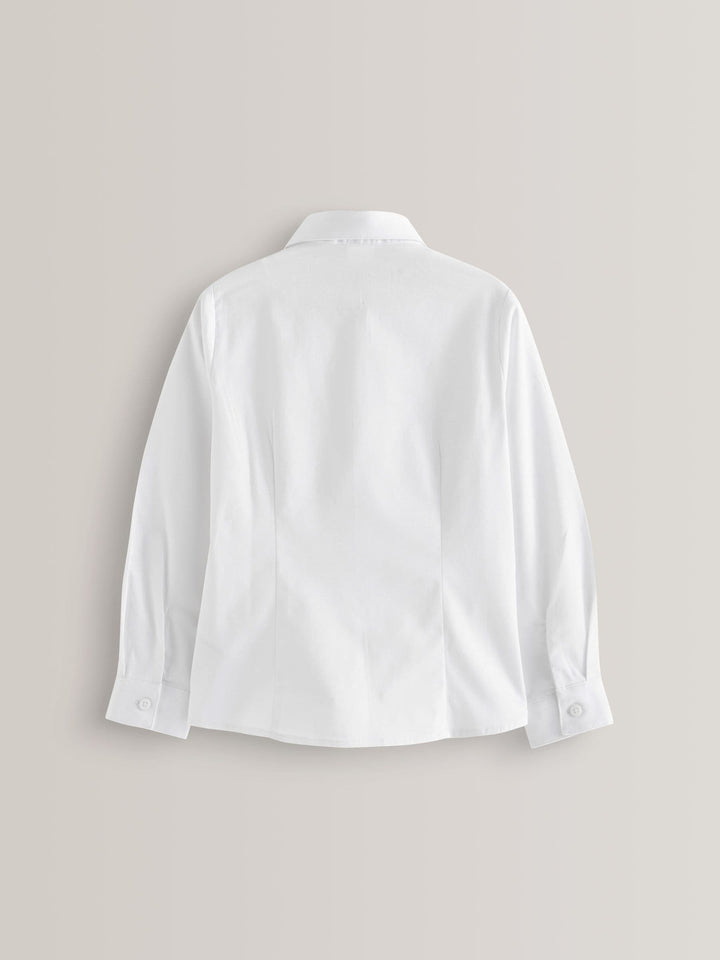 White 2 Pack Fitted Long Sleeve Cotton Rich Stretch Premium School Shirts (3-18yrs)