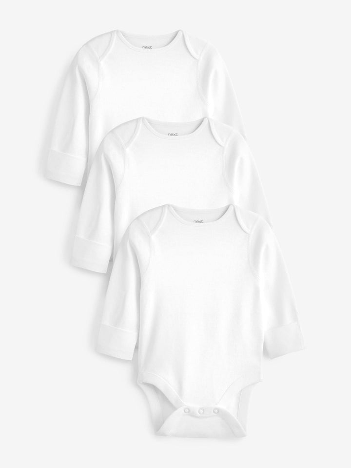 White 3 Pack Kind To Skin Long Sleeve Baby Bodysuits
