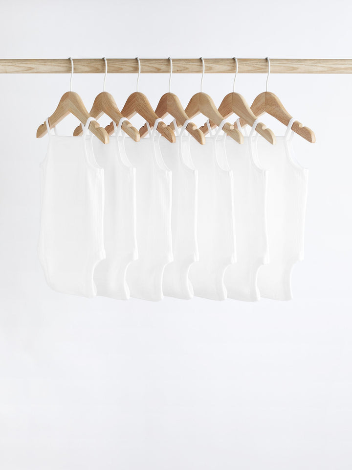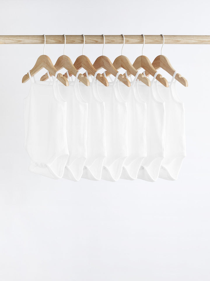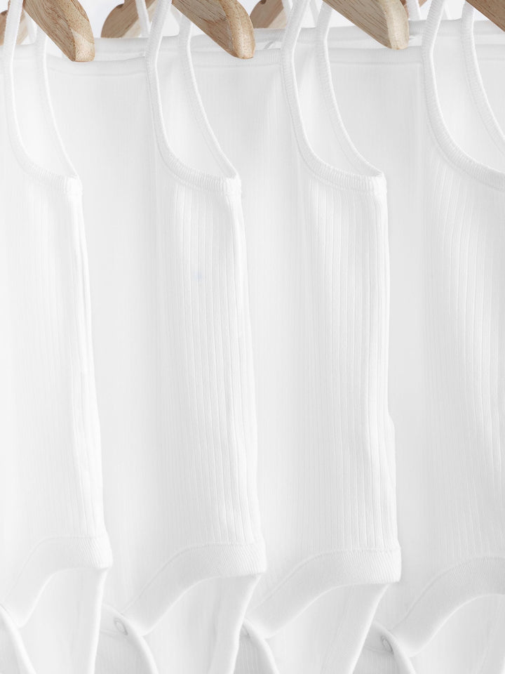 This handy and comfortable multipack of strappy baby bodysuits are the perfect addition to their warm weather wardrobe. Free from harmful dyes or chemicals and designed in supersoft and breathable cotton. The big useful pack is a must for easy rotation. 7 pack baby bodysuits Strappy design Soft and breathable cotton Free from harmful dyes Machine washable. 7 x Bodysuit 100% Cotton. Country of Origin: Bangladesh Warning: Keep away from fire and flames.