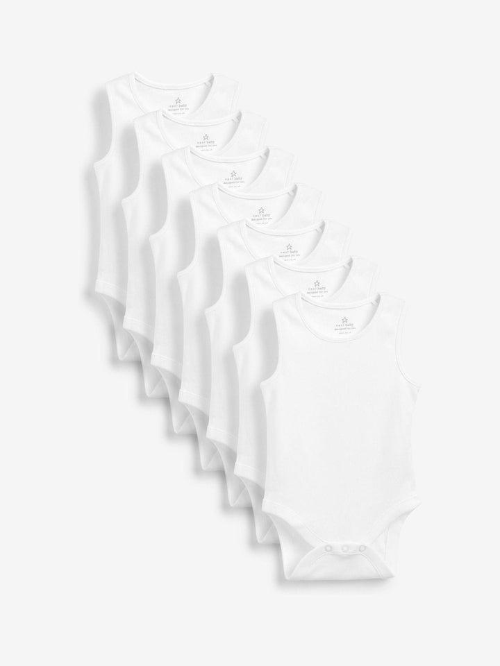 Designed with printed back-neck labels which are supersoft against your baby's neck, our 7 pack vest bodysuits are perfect for sunny days. Nickel-free poppers ensure no irritation to delicate skin and no harmful dyes or chemicals have been used, keeping your baby safe. 7 pack Vest bodysuits Supersoft cotton Machine washable. 7 x Bodysuit 100% Cotton. Country of Origin: Bangladesh Warning: Keep away from fire and flames.