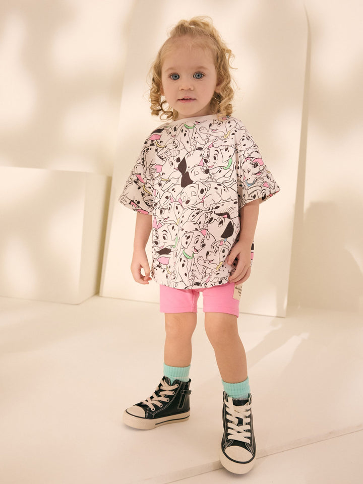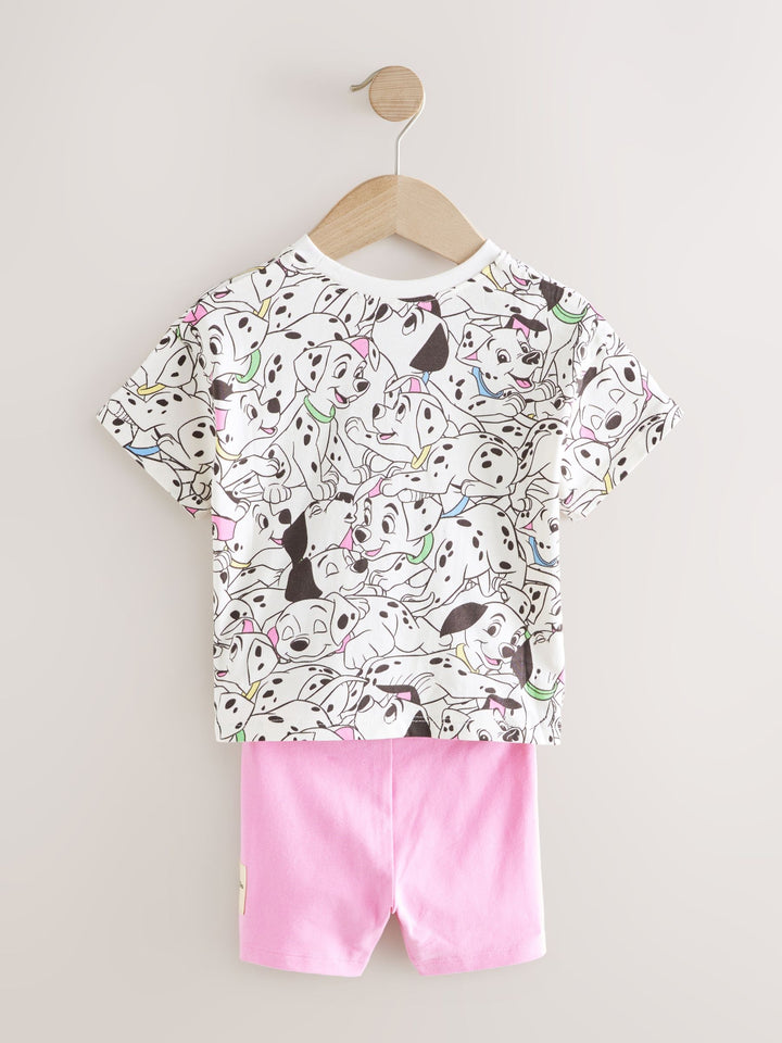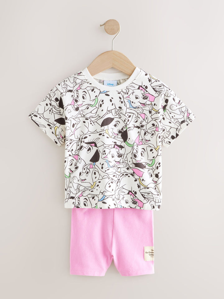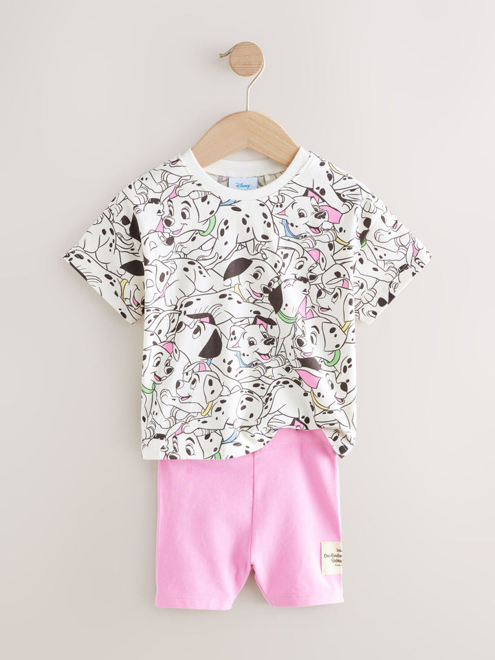 White and Pink Disney 101 Dalmations Short Sleeve T-Shirt and Cycle Shorts Set (3mths-7yrs)