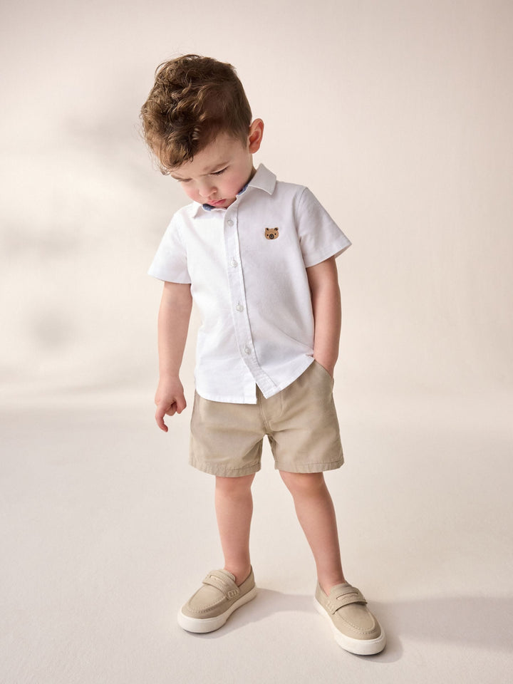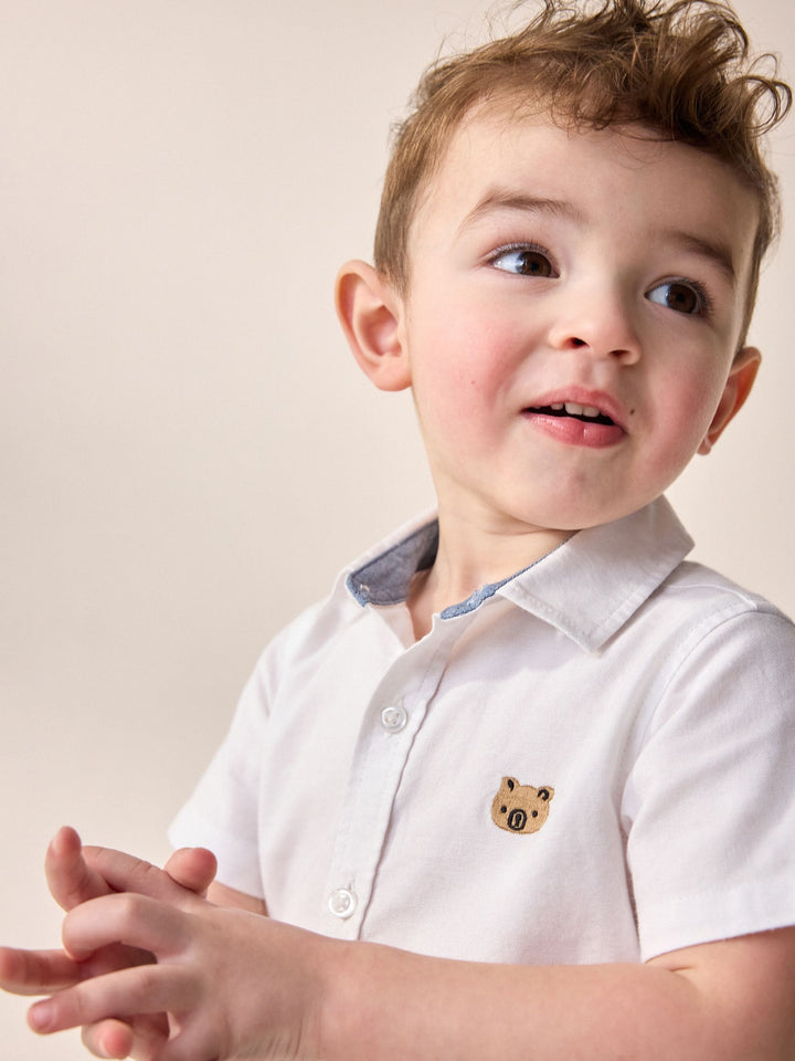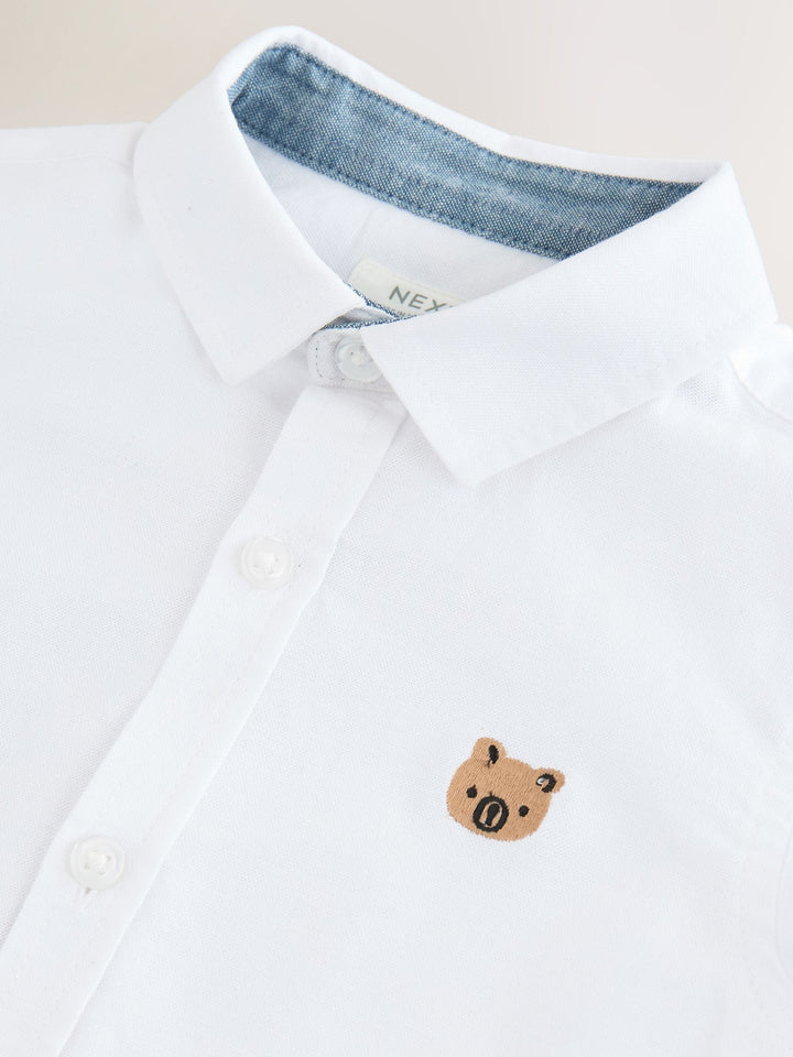 White Bear Embroidery Short Sleeve Oxford Character Shirt (3mths-7yrs)