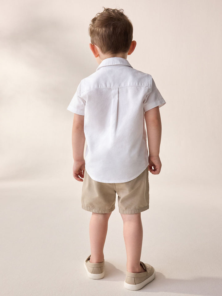 This cotton-rich shirt has an Oxford weave with short sleeves and a smart collar, perfect for casual wear or smart occasion outfits, finished with a button-up fastening. Cotton-rich Button-up fastening Collar detail Short sleeves 98% Cotton, 2% Elastane. Country of Origin: Bangladesh