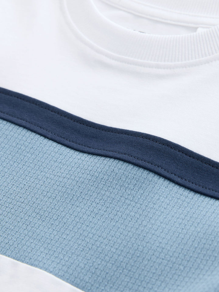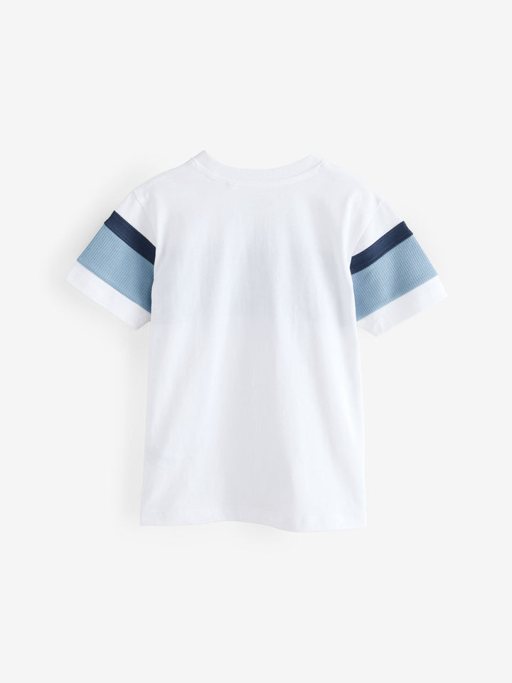 White/Blue Textured Colourblock Short Sleeve T-Shirt (3-16yrs)
