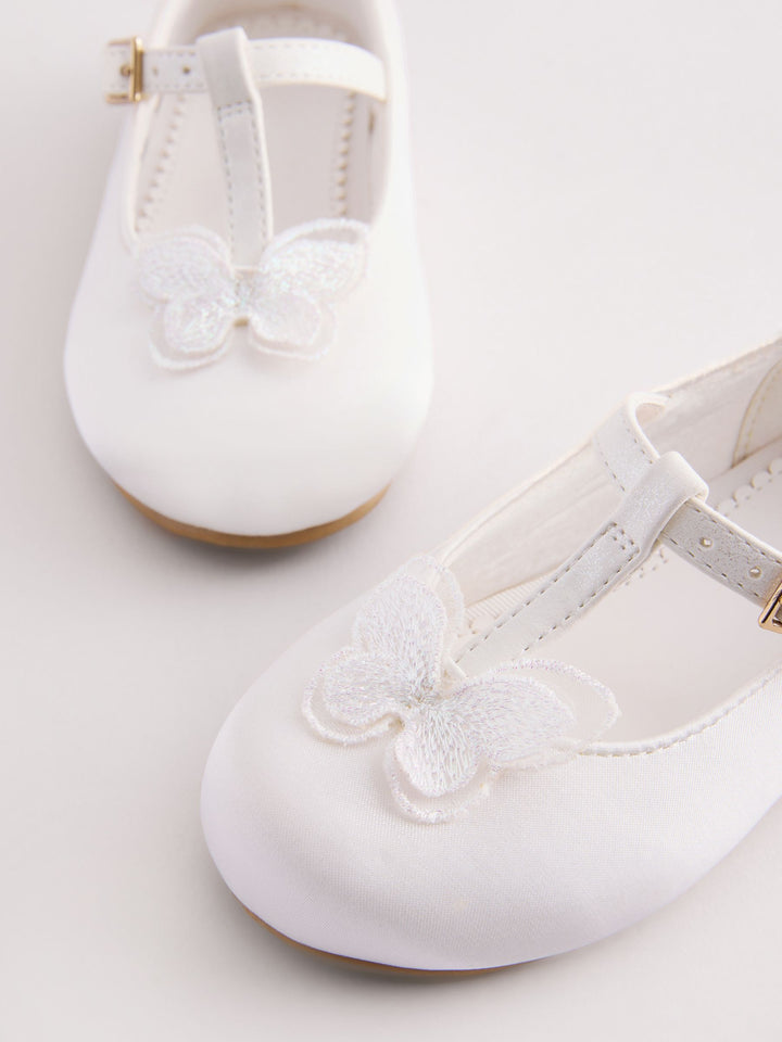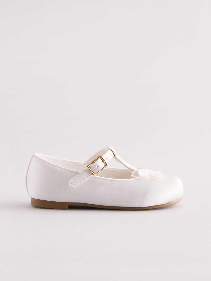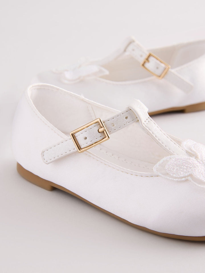 White Butterfly Satin Bridesmaid T-Bar Occasion Shoes