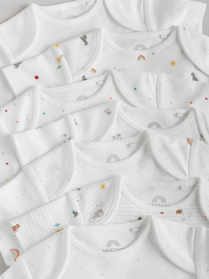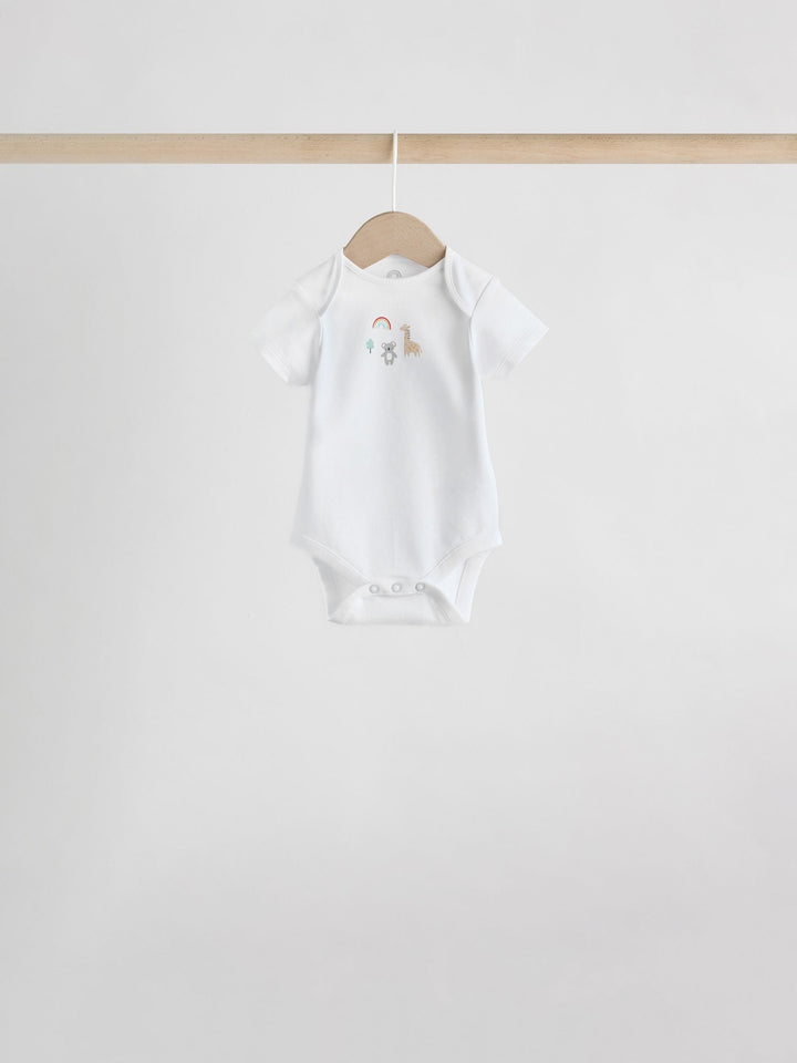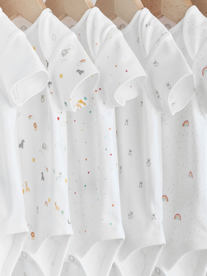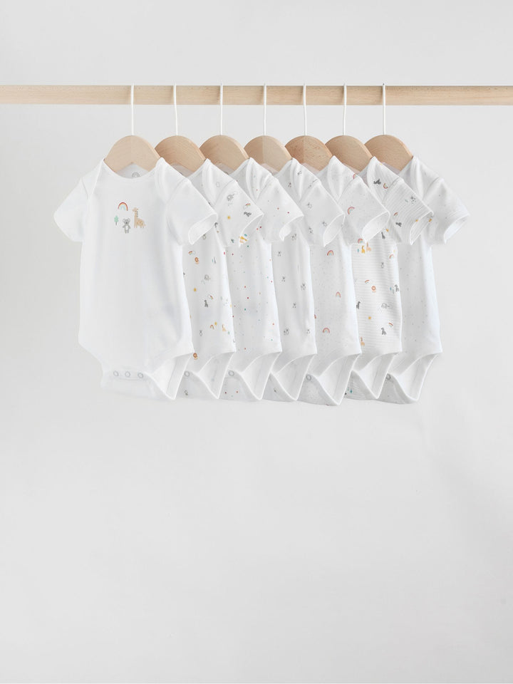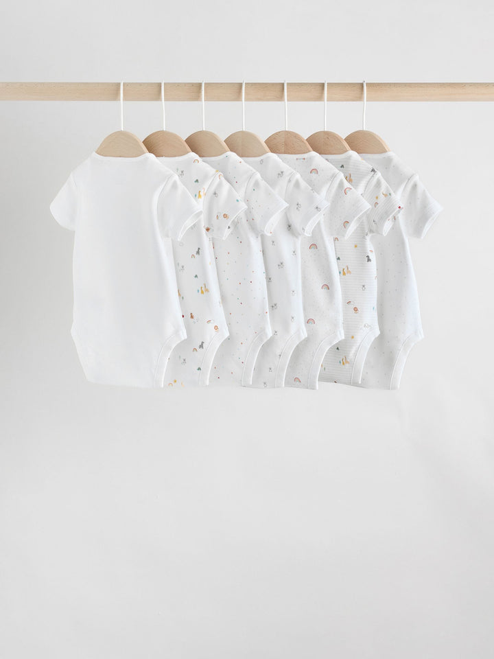 White Character 7 Pack Baby Short Sleeve Bodysuits