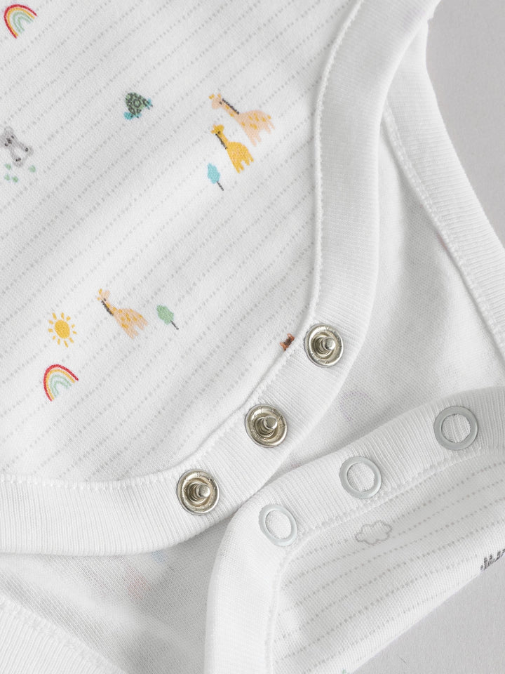 Stock up on a daily essential with this seven-pack of short-sleeve, white bodysuits. The super-soft cotton fabric and envelope neck opening provide a comfortable and gentle feel, while the nickel-free popper fastenings ensure easy changes and protect against irritation. 7-pack Super-soft cotton Envelope neck opening Popper bottom fastening Nickel-free poppers Character print Machine washable. 7 x Bodysuit 100% Cotton. Country of Origin: Sri Lanka Warning: Keep away from fire and flames.