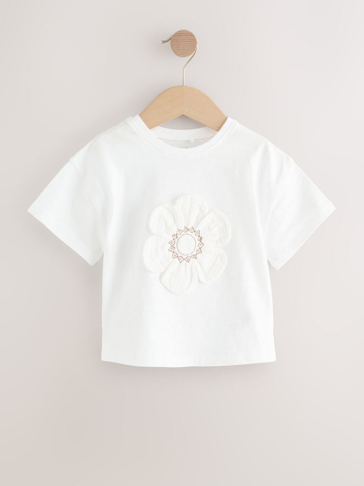 White Flower Short Sleeve 100% Cotton T-Shirt (3mths-7yrs)