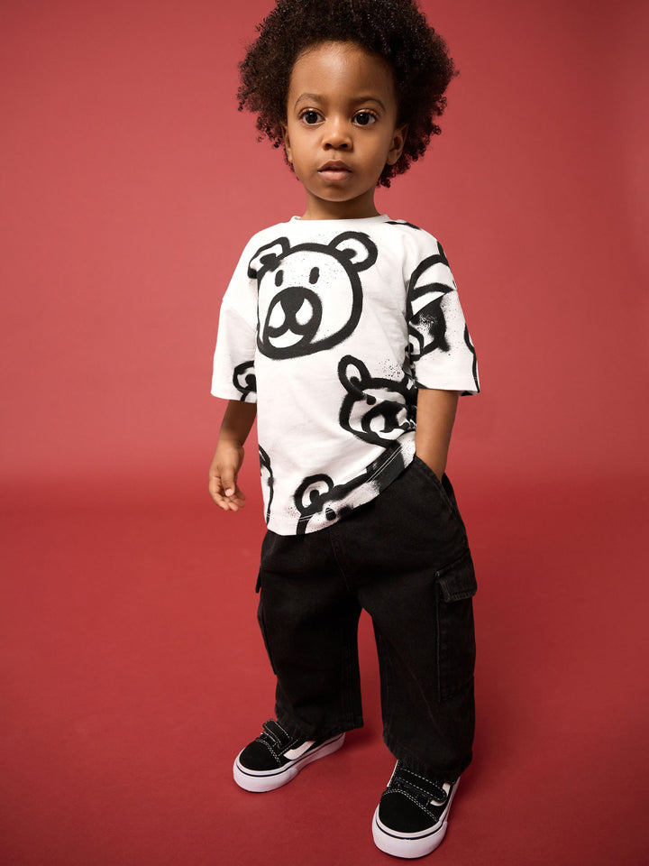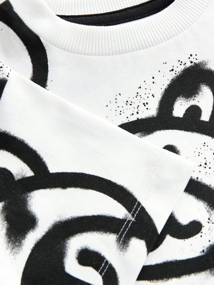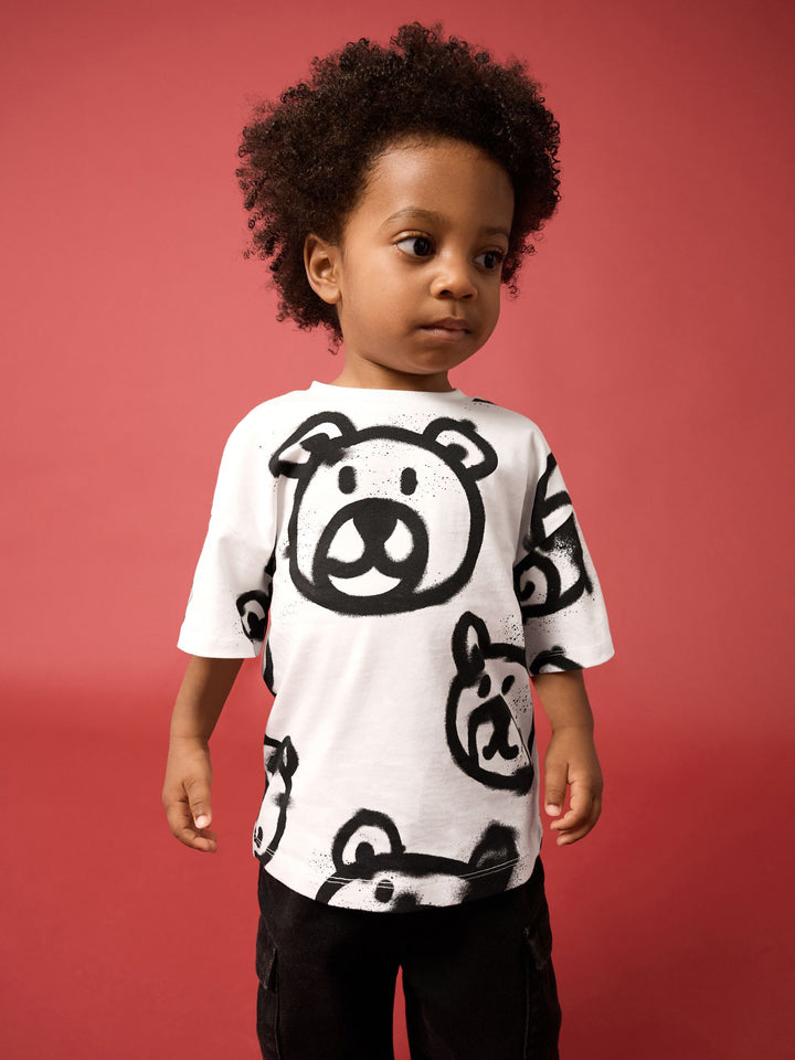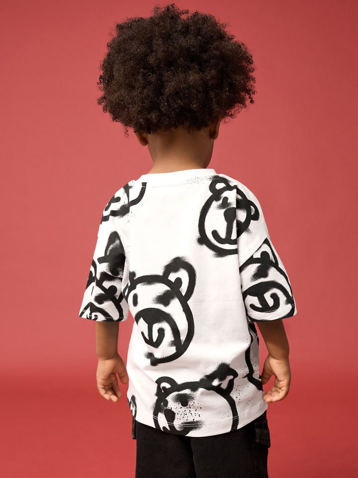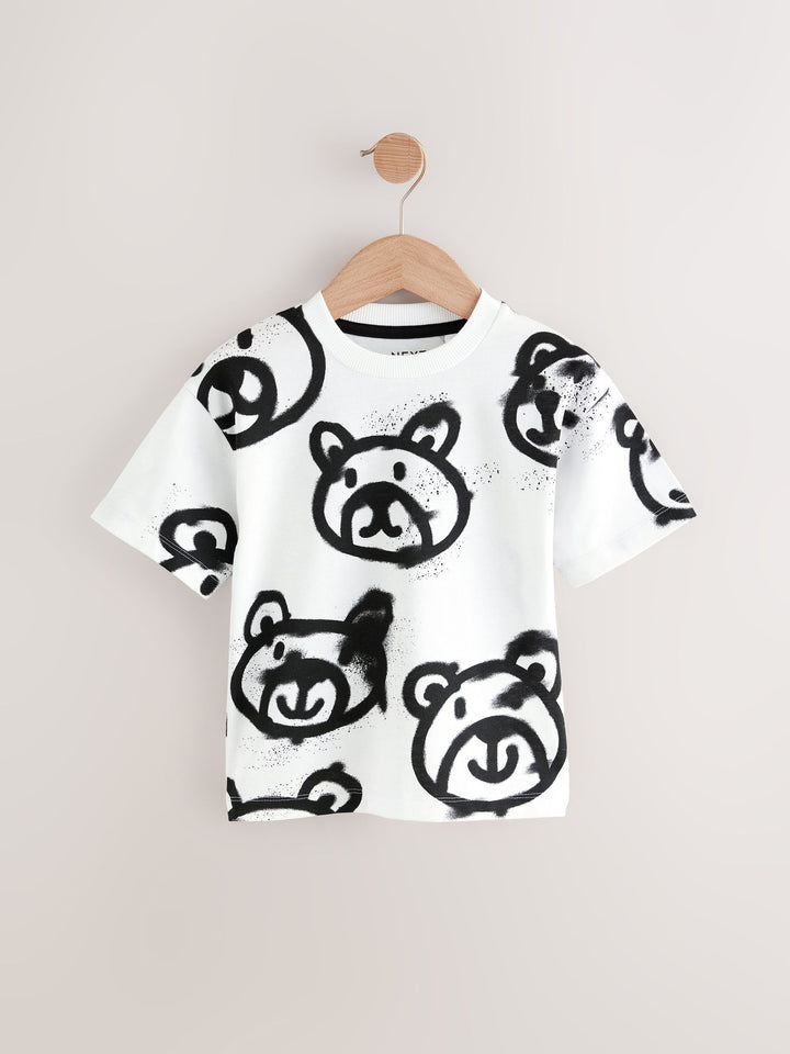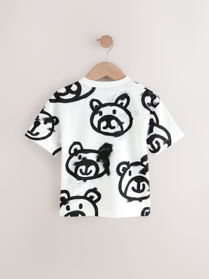 White Graffiti Bear Short Sleeve All-Over Print T-Shirt (3mths-7yrs)