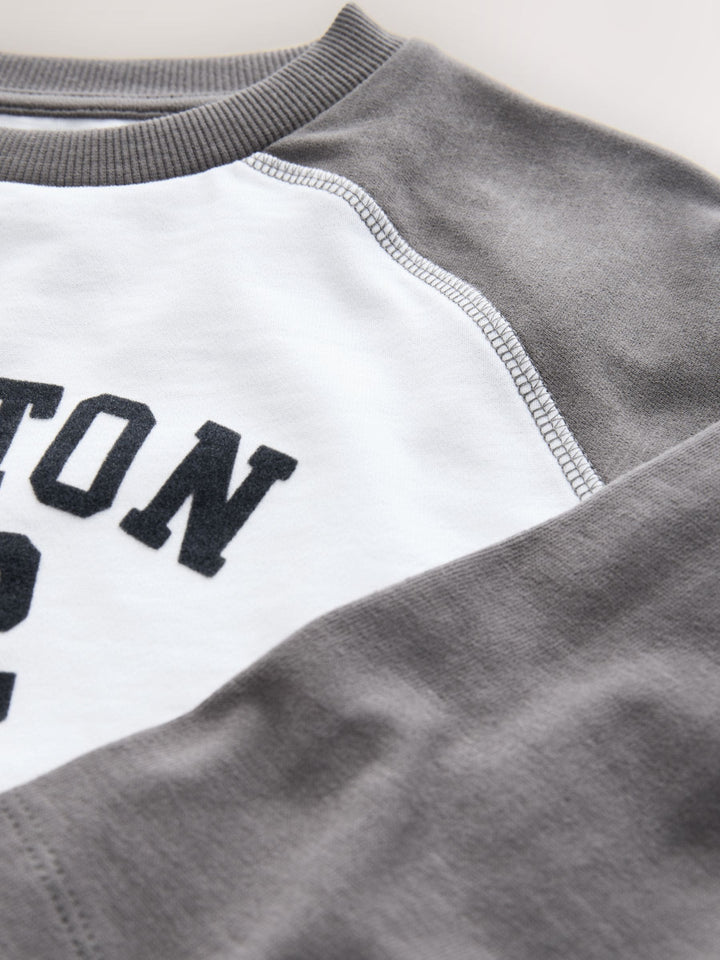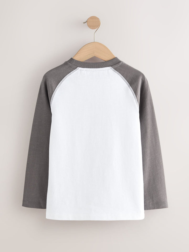 White/Grey Varsity Long Sleeve Cotton T-Shirt (3-16yrs)