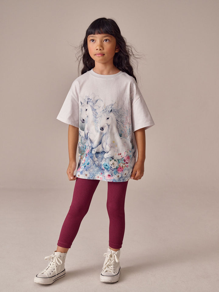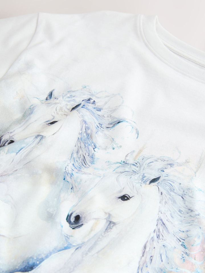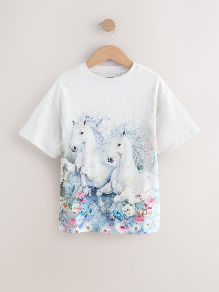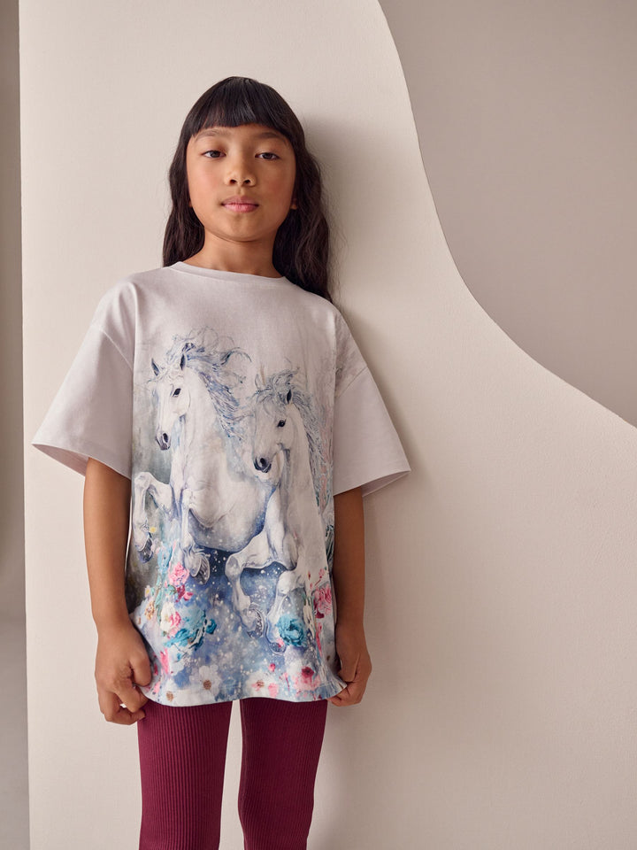 White Horses Oversized Graphic Print T-Shirt (3-16yrs)