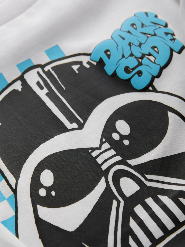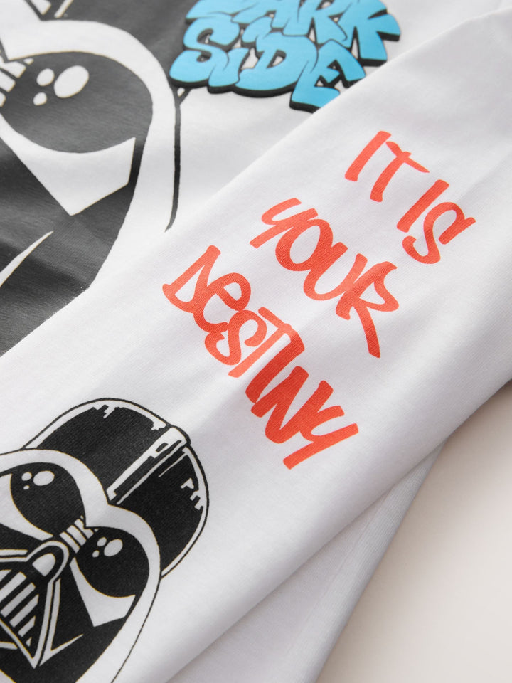 Get ready for galactic adventures with this long sleeve tee. Crafted from soft jersey, it features a bold 'Star Wars' graphic and a crew neck, making it perfect for everyday casual wear. A must-have for young fans, this top combines comfort and iconic style. Crew neck Long sleeves 'Star Wars' graphic print 100% Cotton. Country of Origin: Bangladesh