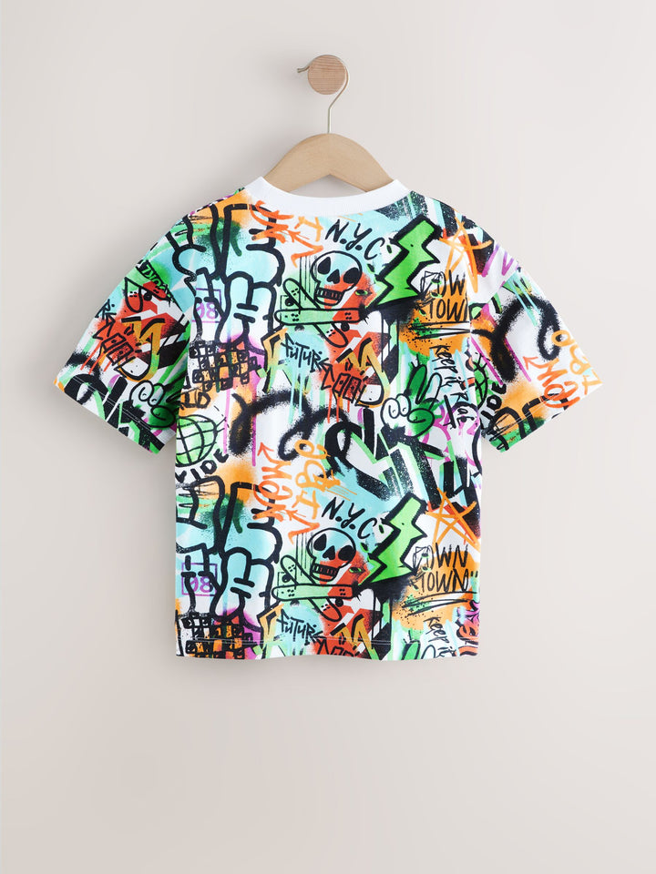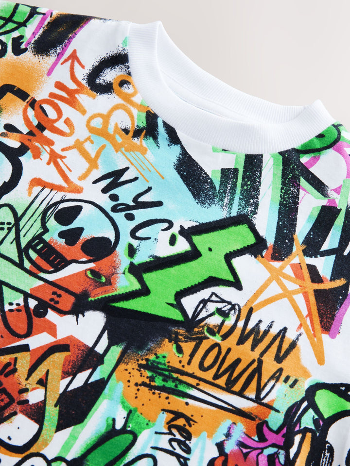 White/Multi Graffiti Relaxed Fit Short Sleeve Graphic Print T-Shirt (3-16yrs)