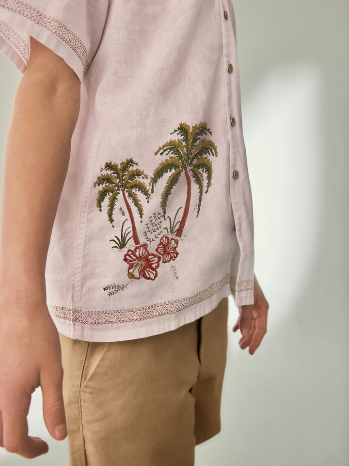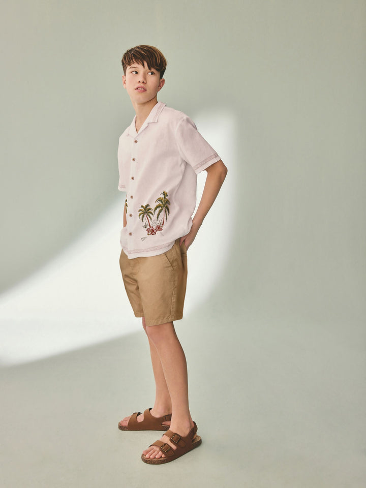 White Palm Tree Short Sleeves Revere Collar Shirt (3-16yrs)