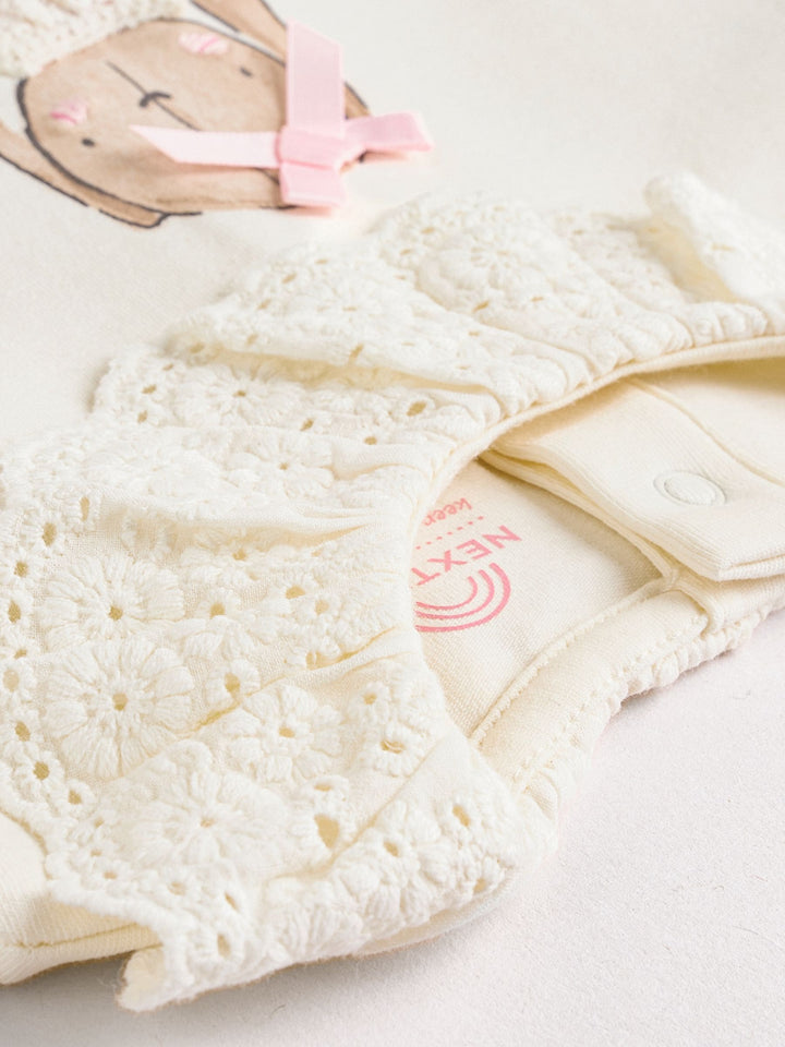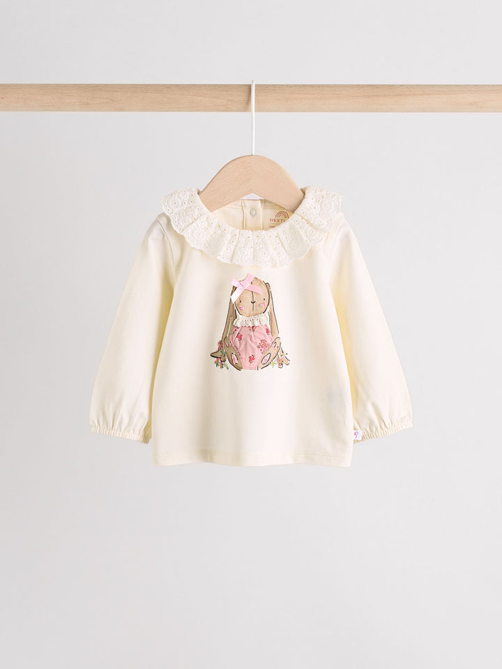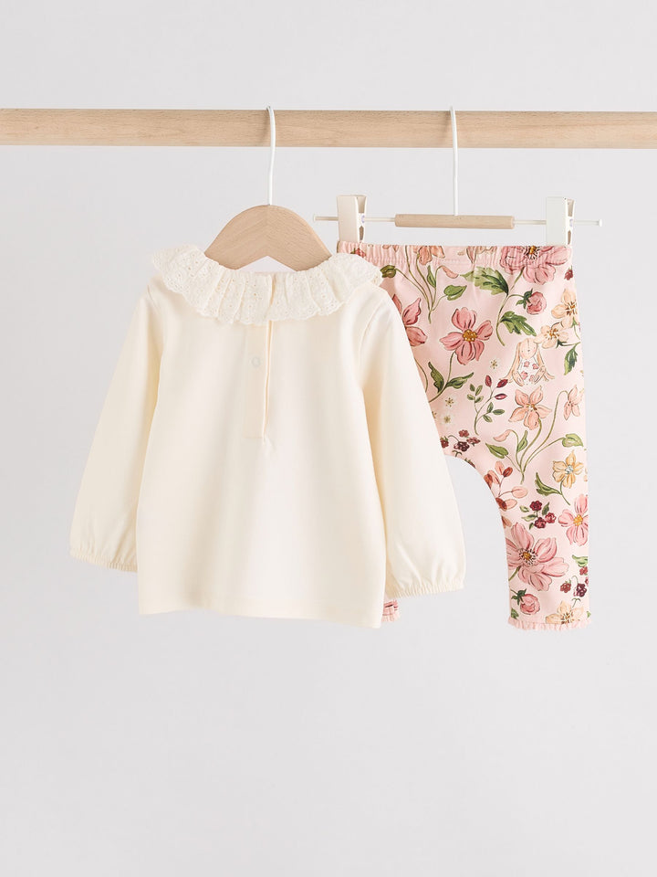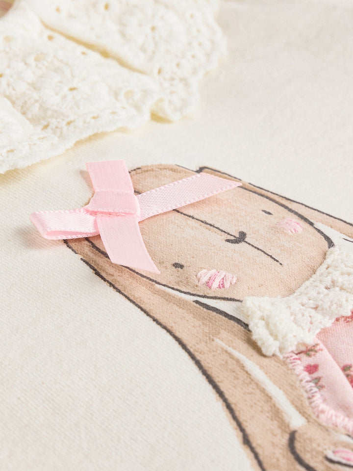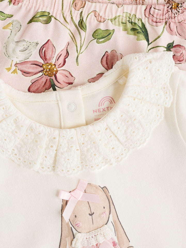 This cute 2-piece set is a perfect put-together look for spring and summer, featuring a long sleeve cotton-rich top with a frill neckline and elasticated sleeve cuffs, decorated with a bunny graphic to the chest with 3D bow detailing. Full-length leggings finish the outfit, with an all-over floral print and an elasticated waistband for pull-on wear. 2-piece set Cotton-rich top Long sleeves Frill neckline Bunny print Full-length leggings Elasticated waistband Machine washable. T-shirt Main 95% Cotton, 5% Elastane. Collar 100% Cotton. Leggings 95% Cotton, 5% Elastane. Country of Origin: India Warning: Keep away from fire and flames.
