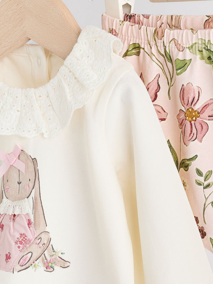 White/Pink/Bunny/Floral Baby Long Sleeve Top and Leggings Set (0mths-2yrs)