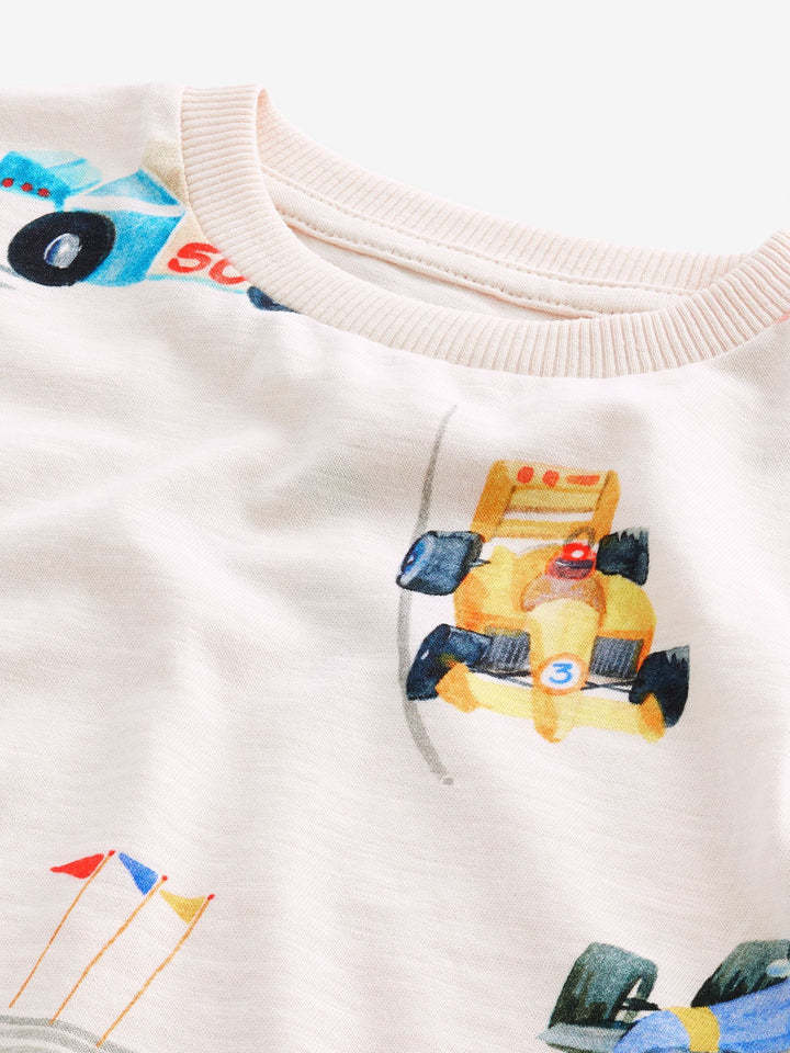 White Racecar Short Sleeve All-Over Print T-Shirt (3mths-7yrs)