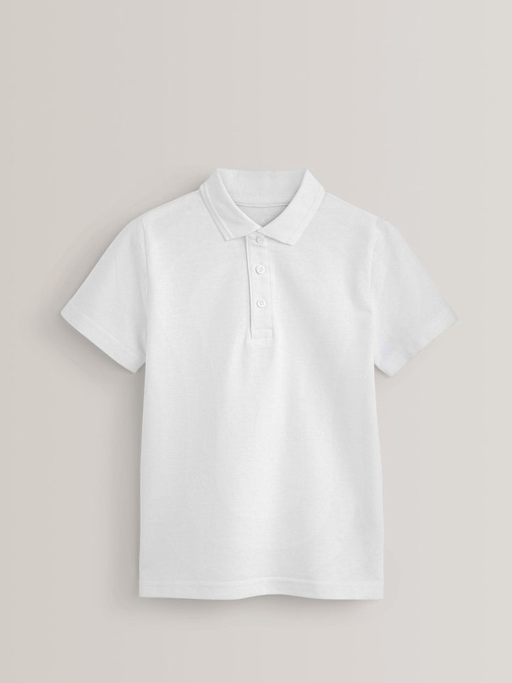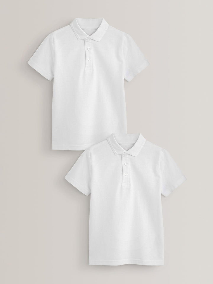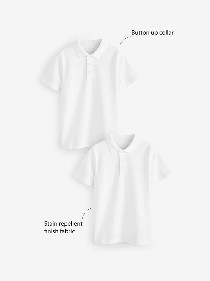 White Regular Fit Cotton School Short Sleeve Polo Shirts 2 Pack (3-16yrs)