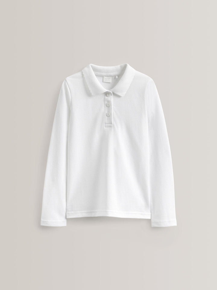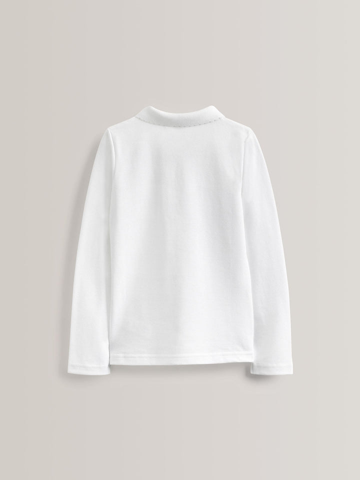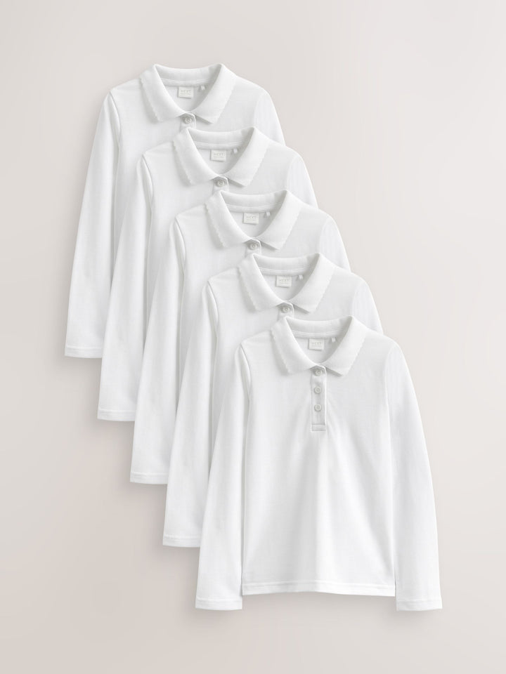 White Slim Fit 5 Pack 100% Cotton Long Sleeve School Polo Shirts (3-16yrs)