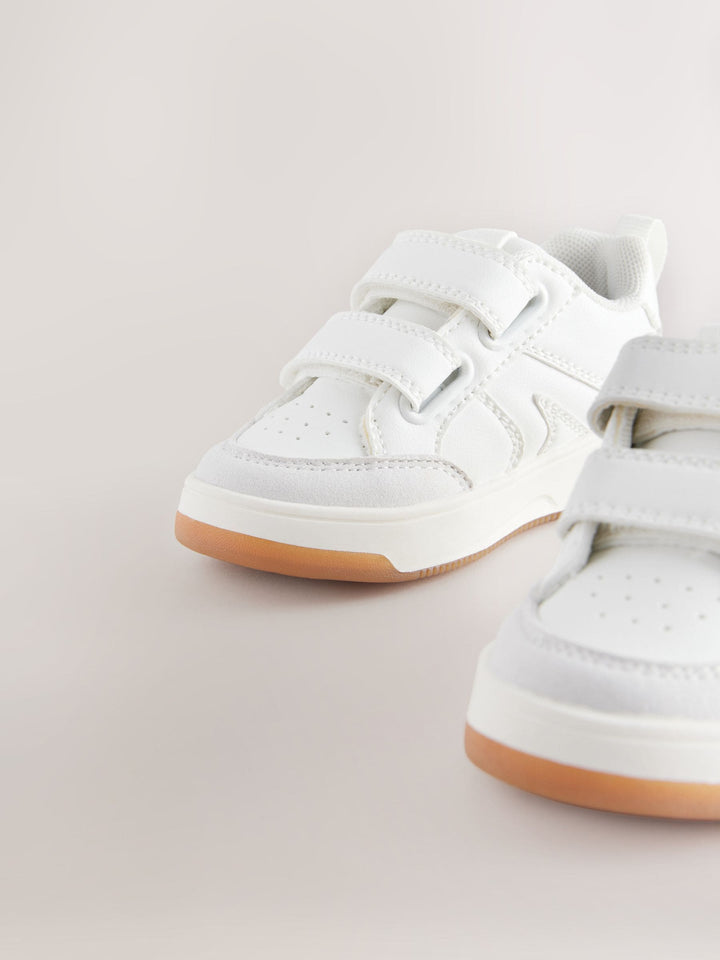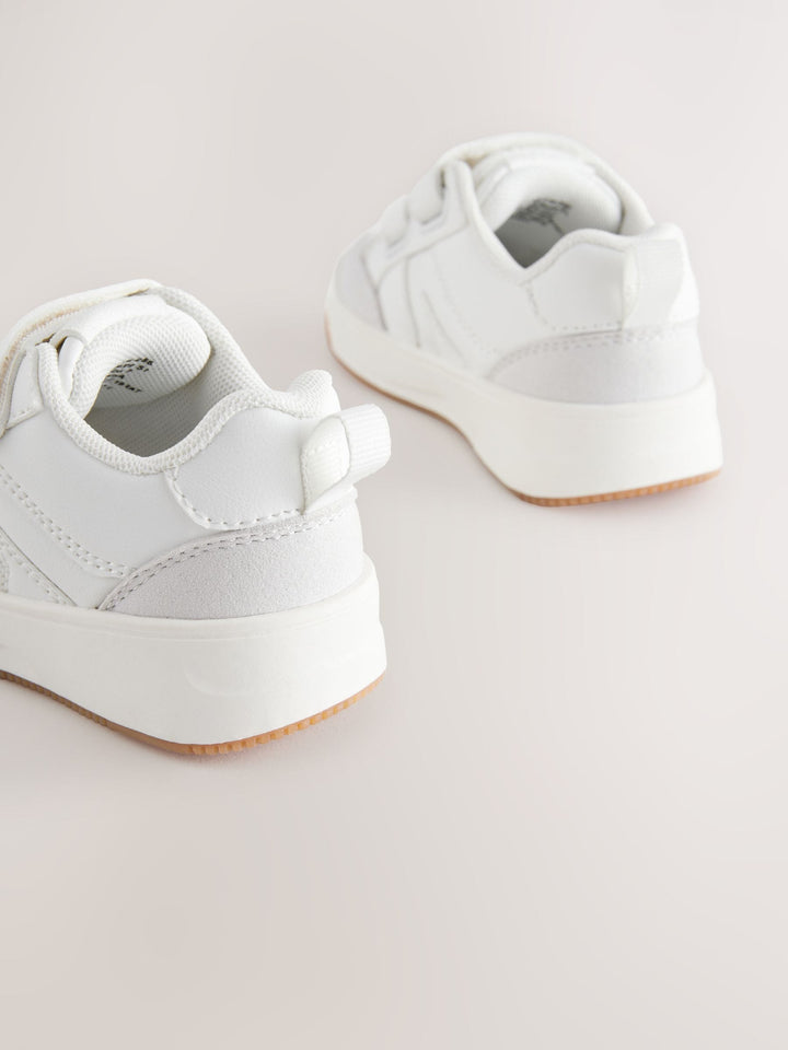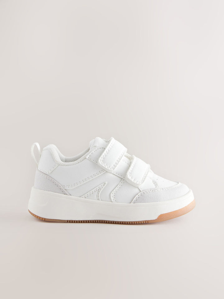 These classic white trainers are perfect for everyday wear, featuring a synthetic leather upper with adjustable dual-strap touch fastenings, a perforated toe box and a textile lining, finished with a durable outsole. Standard fit (F) Synthetic upper Touch-fastened straps Textile lining Durable outsole Upper - Other Materials, Textile, Lining & Sock - Textile, Sole - Other Materials. Country of Origin: China