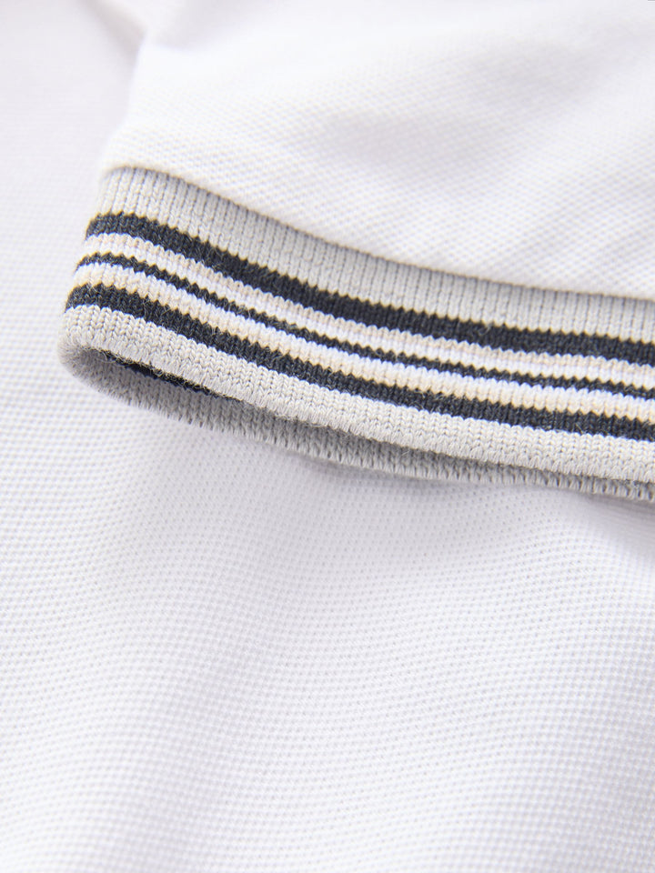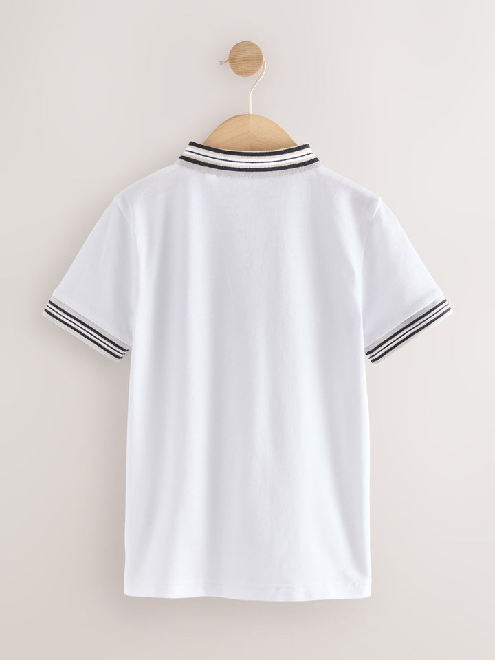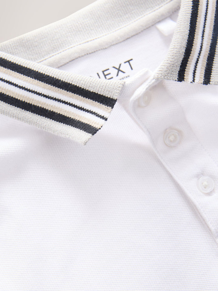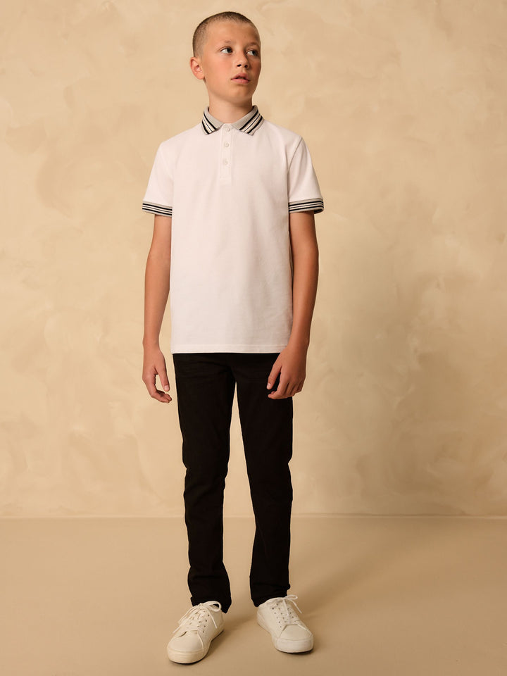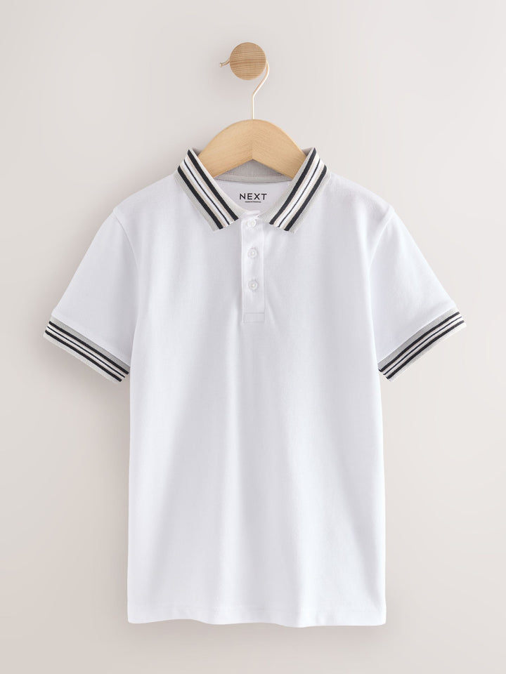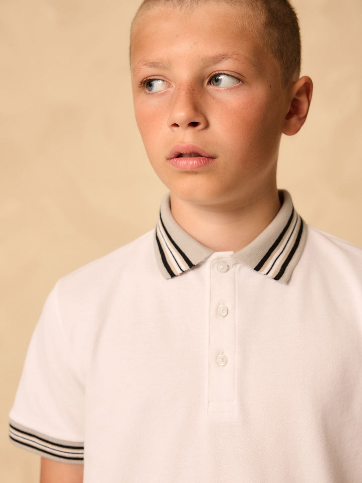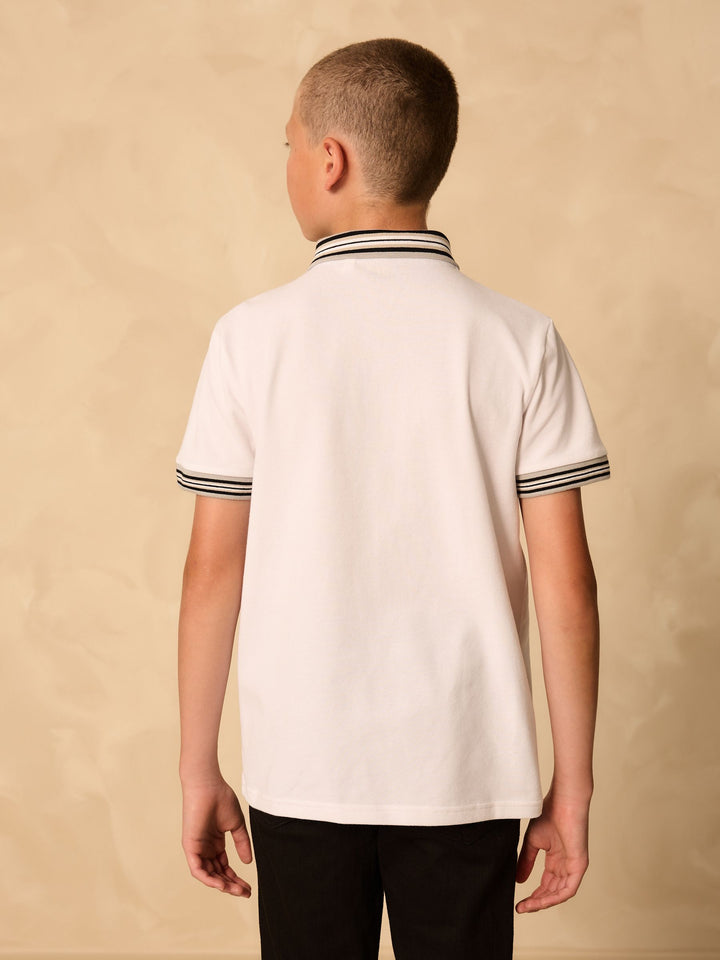 White Stripe Tipped Collar Short Sleeve Polo Shirt (3-16yrs)