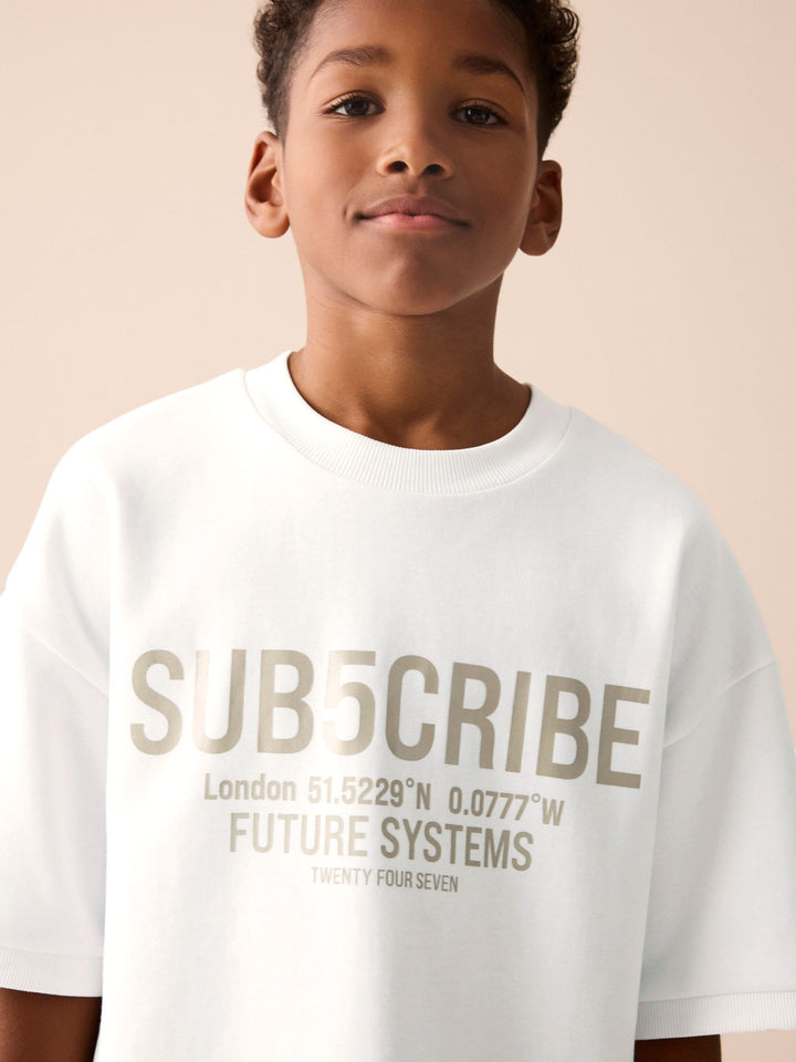 White Sub5cribe Graphic Print Heavyweight Short Sleeve T-Shirt (3-16yrs)