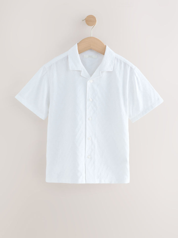 White Texture Short Sleeves Smart Textured Shirt (3-16yrs)