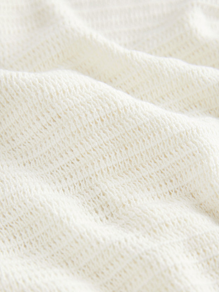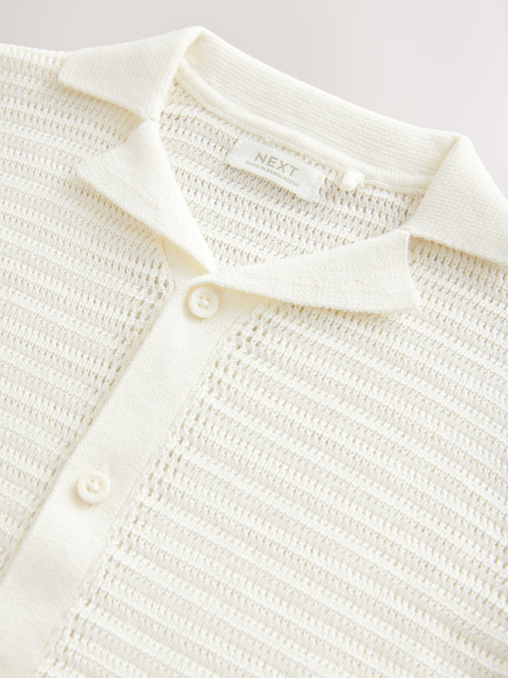 White Textured Revere Collar Short Sleeve Knitted 100% Cotton Polo Shirt (3mths-7yrs)