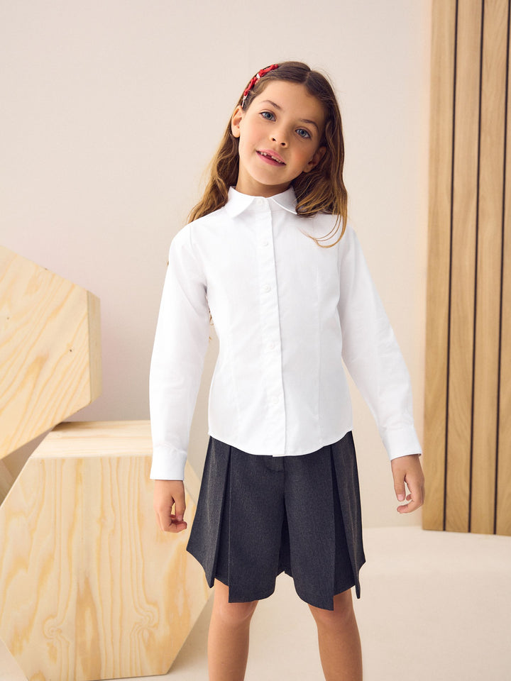 White Touch Fastening Cotton Rich Stretch Long Sleeve School Shirt (3-17yrs)