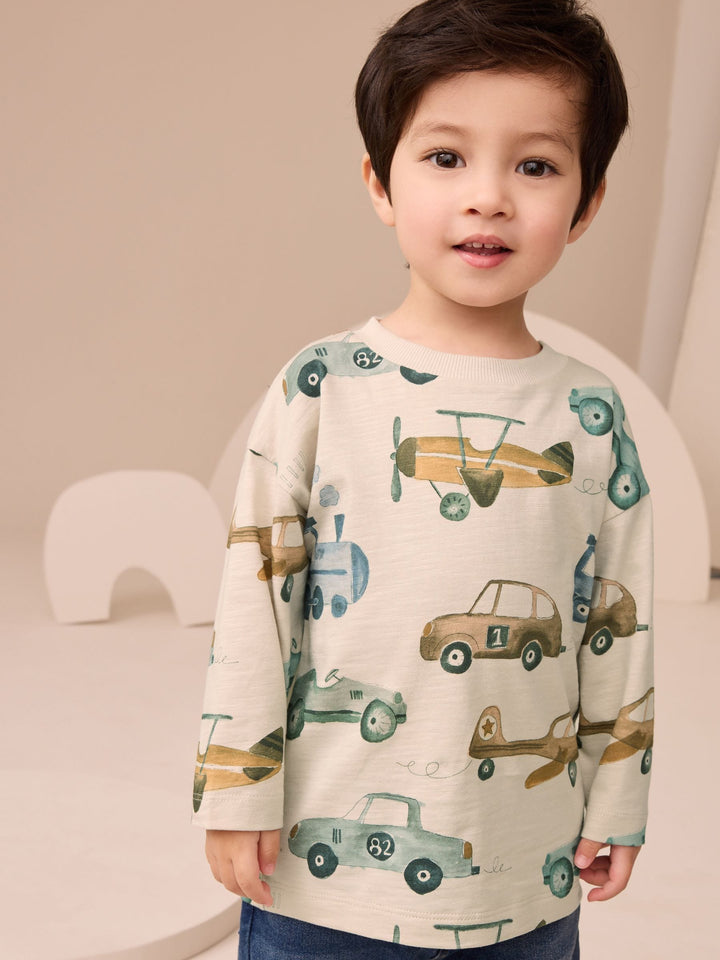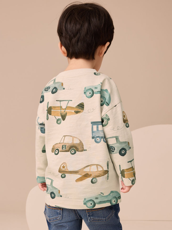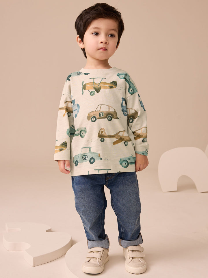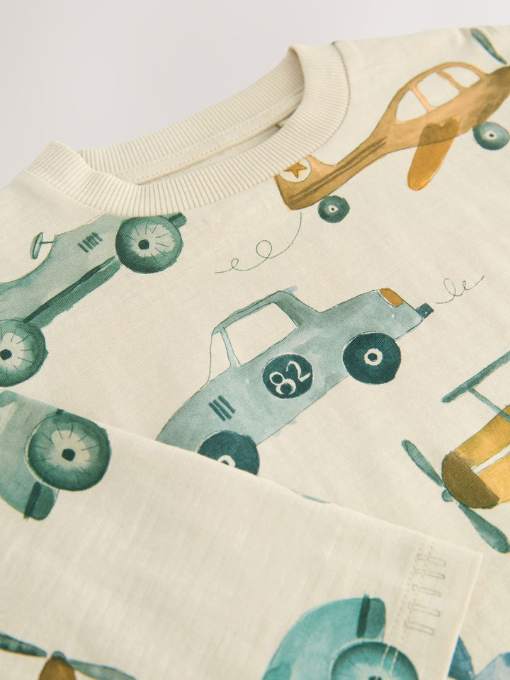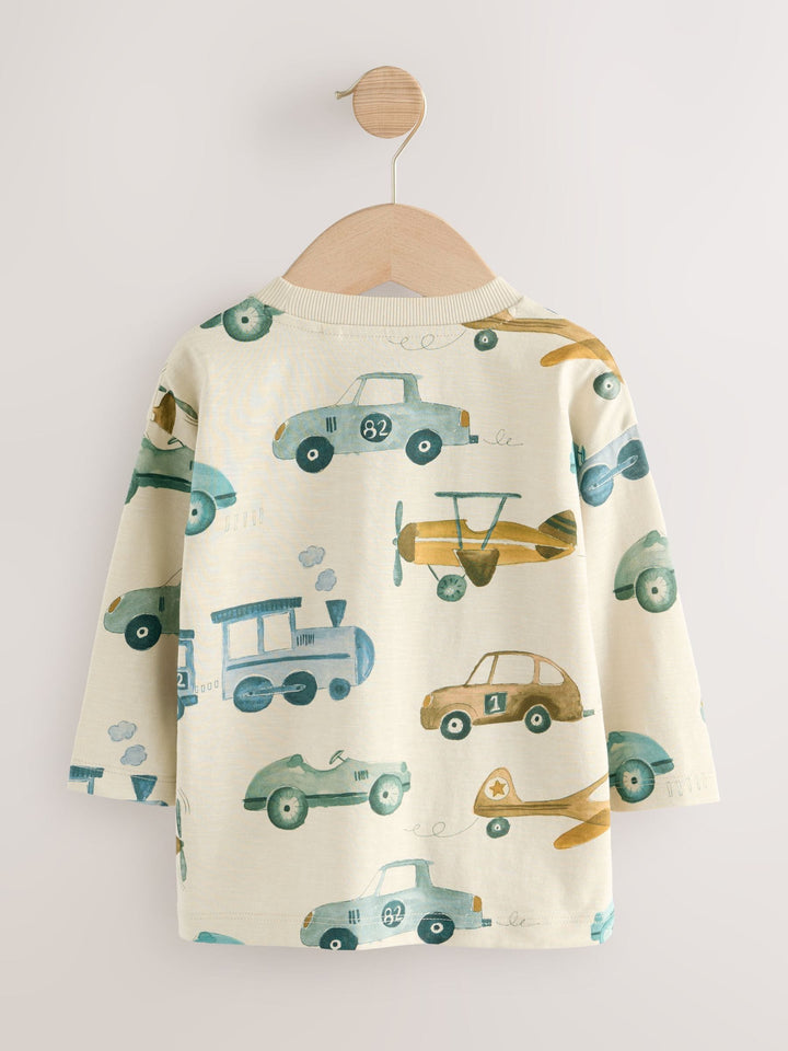 White Transport 100% Cotton Long Sleeve All-Over Print T-Shirt (3mths-7yrs)