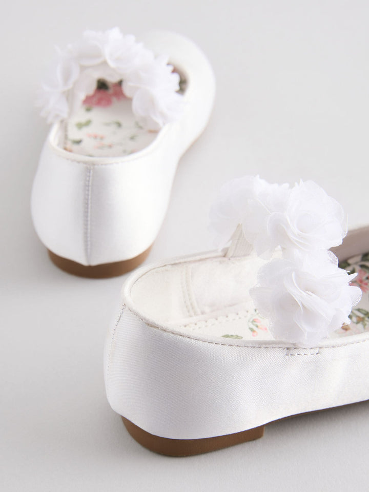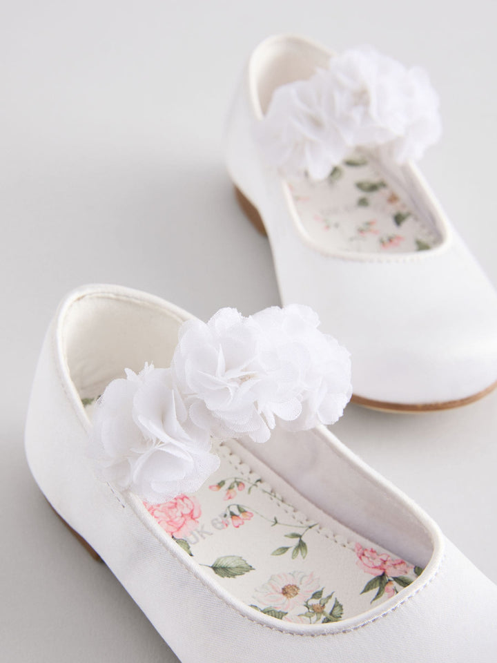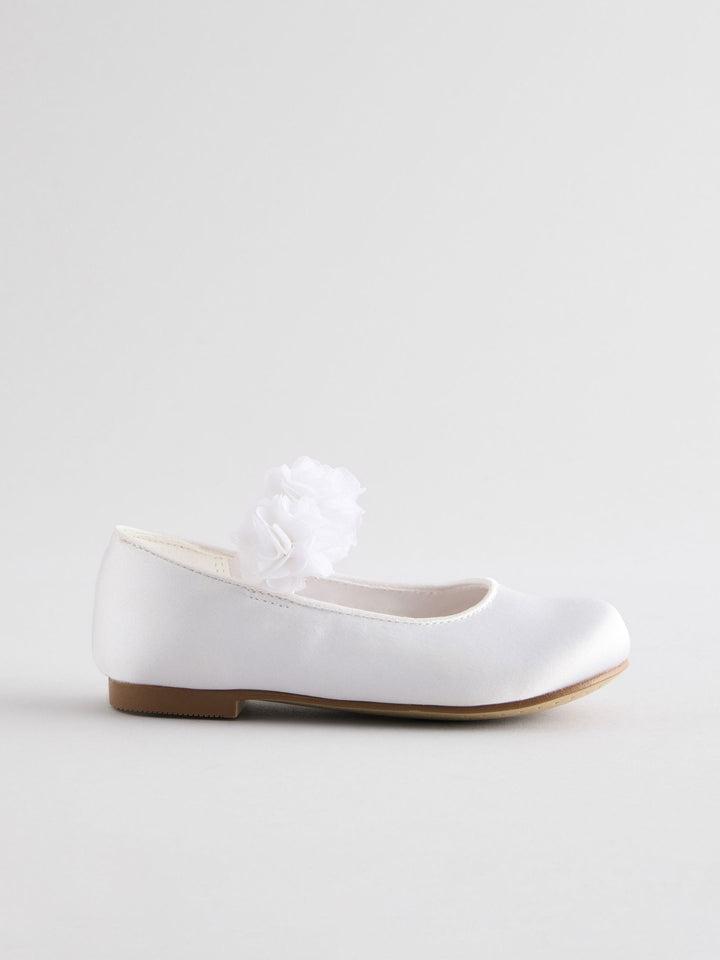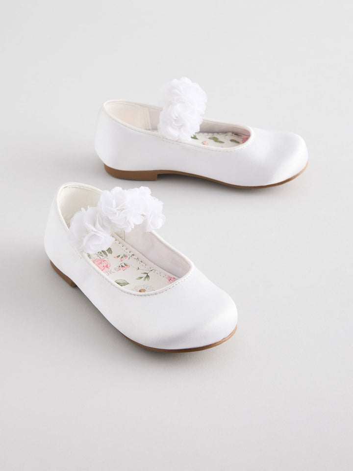 A tasteful finishing touch for wedding outfits, these gorgeous white Mary Jane shoes have a smooth satin upper with corsage detailing to the elasticated strap, finished with a textile lining and a durable slip outsole. Wide fit (G) Satin upper Textile lining Elasticated corsage strap Round toe Durable outsole Upper - Textile, Lining & Sock - Textile, Other Materials, Sole - Other Materials. Country of Origin: China