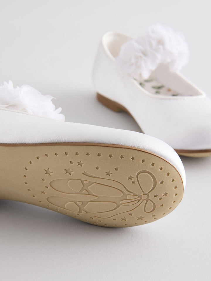White Wide Fit (G) Satin Flower Girl Occasion Corsage Mary Jane Shoes