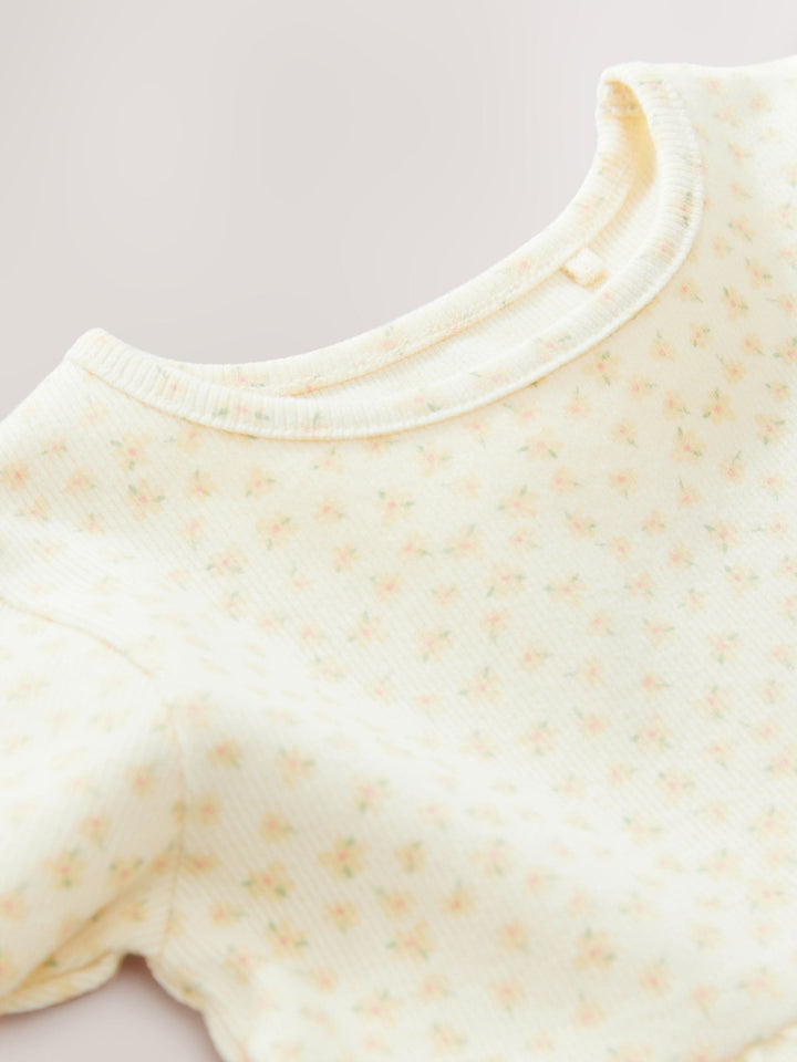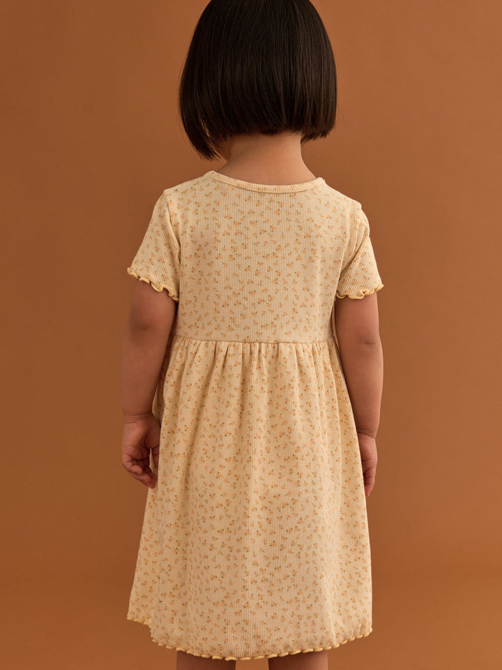 A twirlworthy addition to her summer selection, this yellow short sleeve dress is made from a cotton rich blend and features a pretty floral print with a ribbed texture. Pair with her favourite summer sandals for a cute look. Cotton rich Floral print Short sleeves Ribbed texture Machine washable. 95% Cotton, 5% Elastane. Country of Origin: Bangladesh