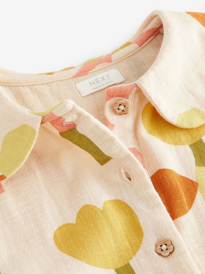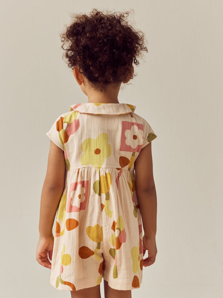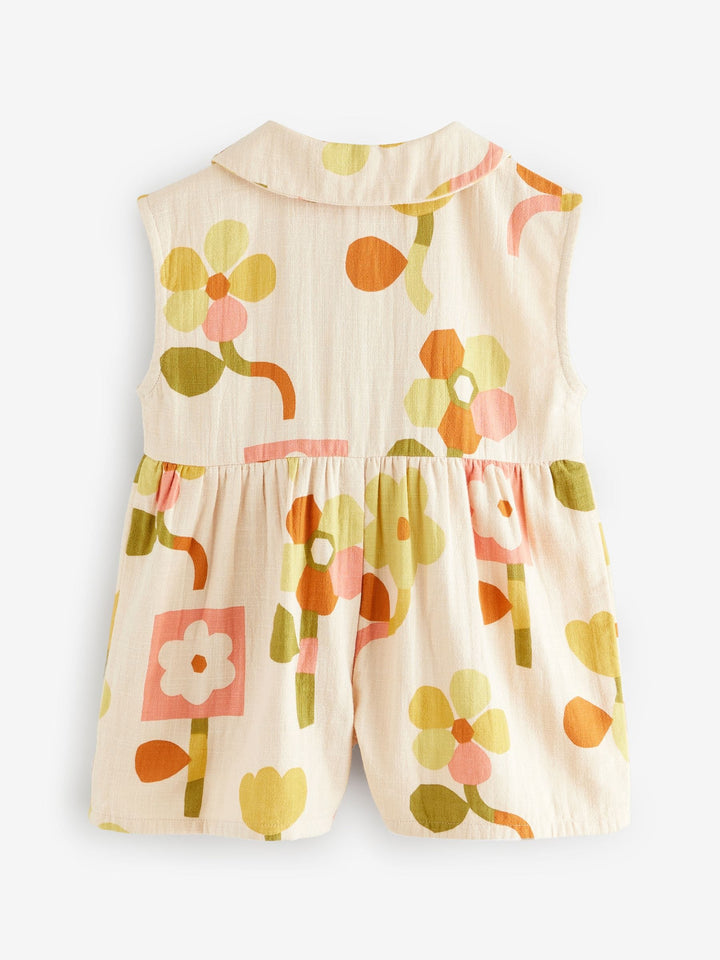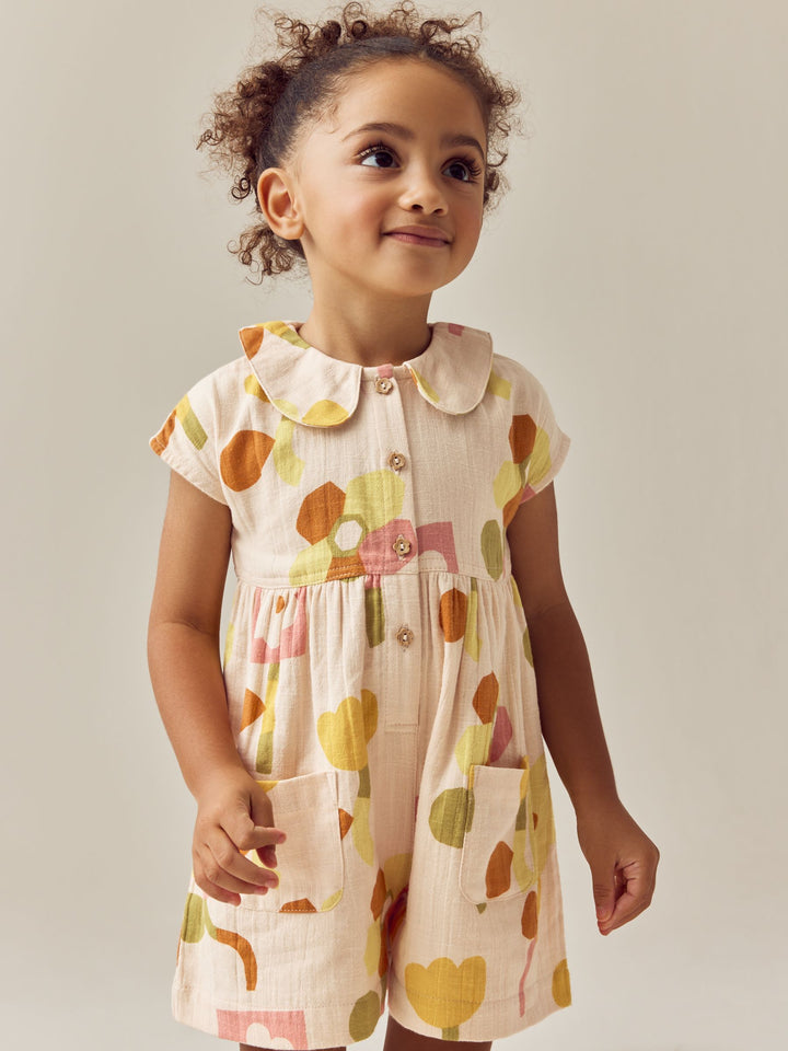 This gorgeous yellow floral playsuit is made from pure cotton with a button fastening and a shirt collar design, featuring patch pockets and pleated detailing. Simply pair with or without tights and their favourite trainers and they're ready to go. 100% cotton Button-up fastening Shirt collar Patch pockets Pleated detailing 100% Cotton. Country of Origin: India