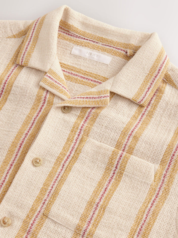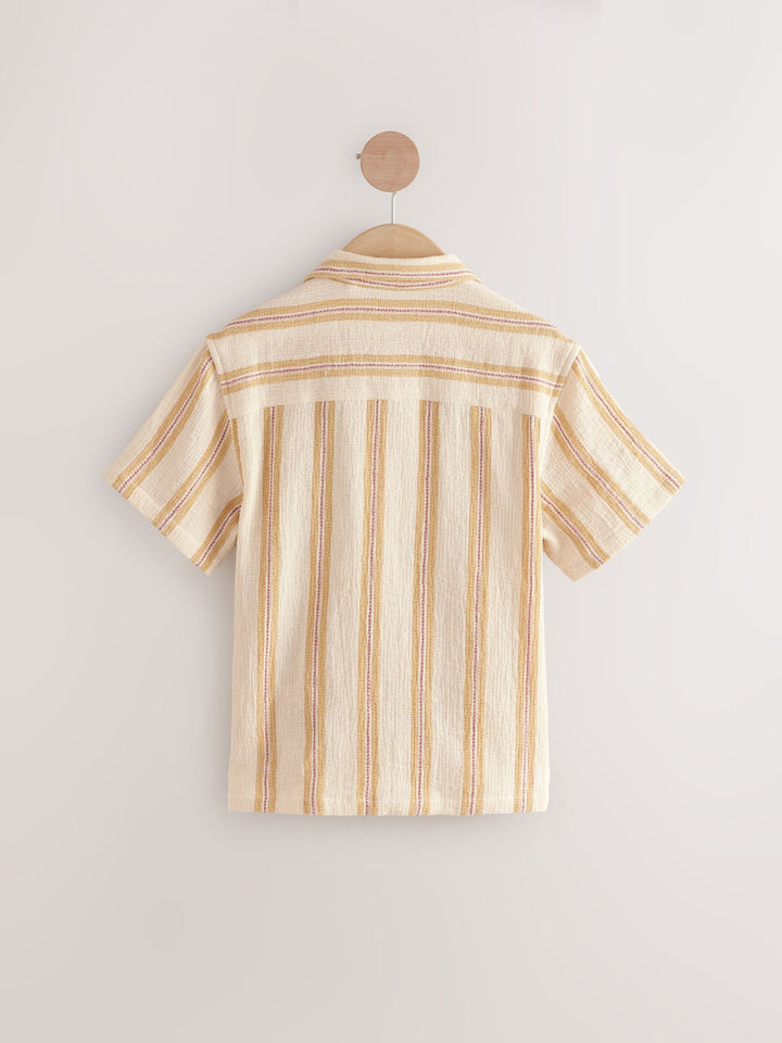 Yellow Stripe Short Sleeves Revere Collar Texture Stripe Shirt (3-16yrs)