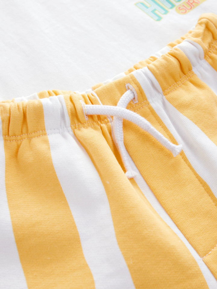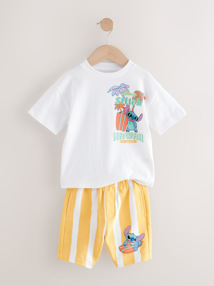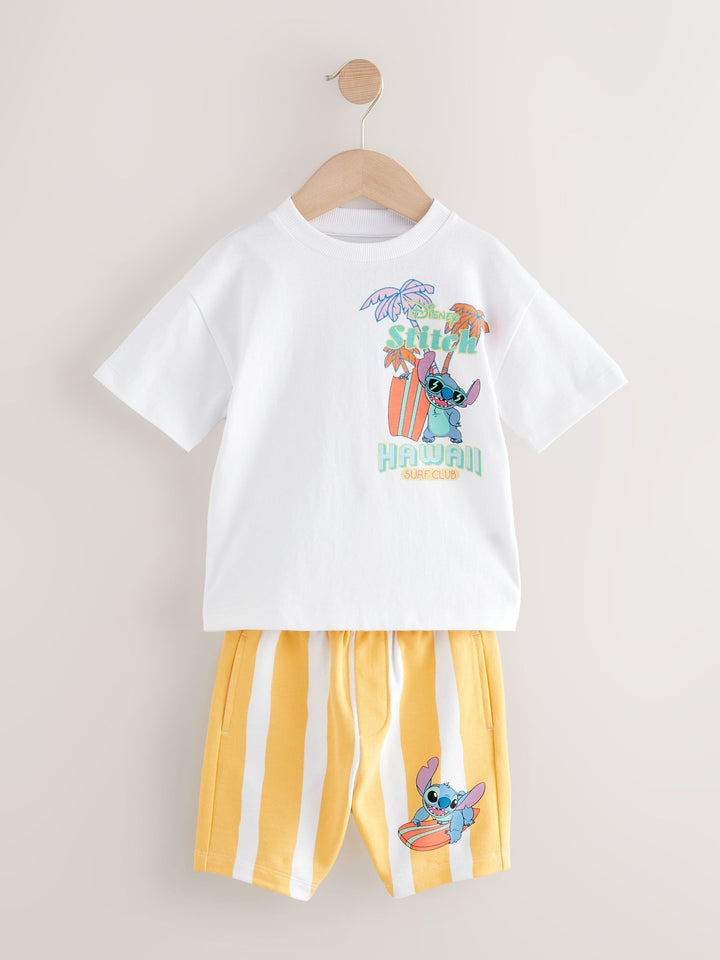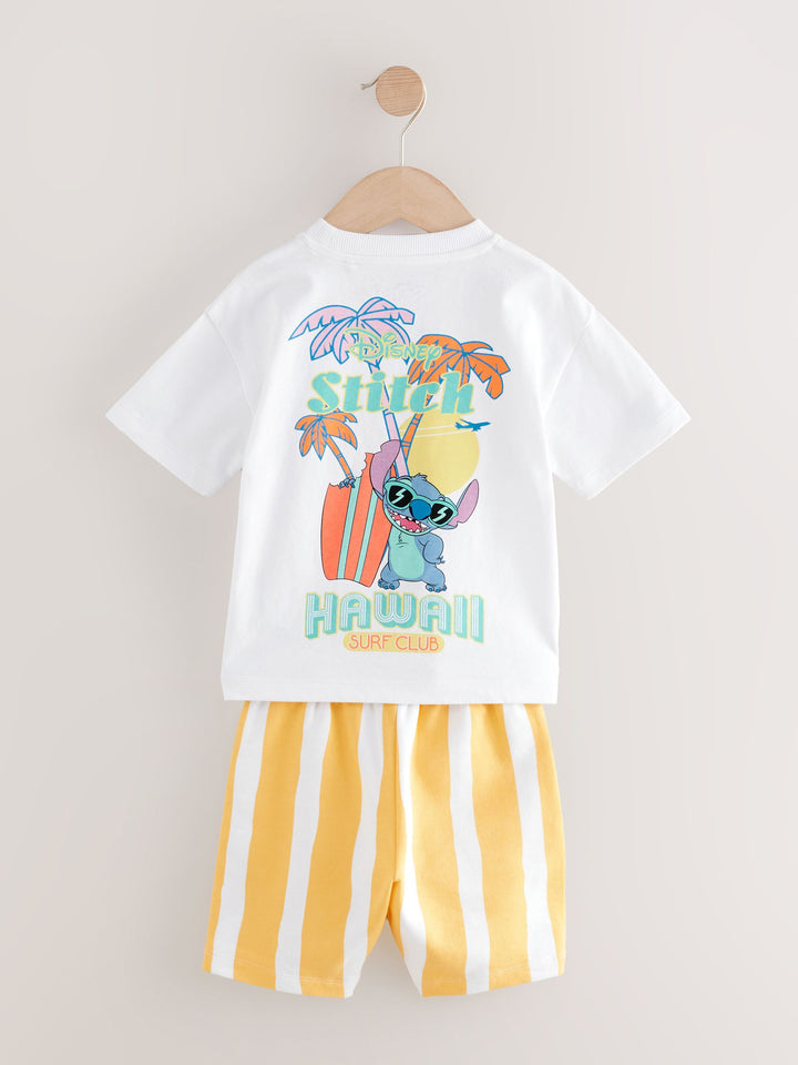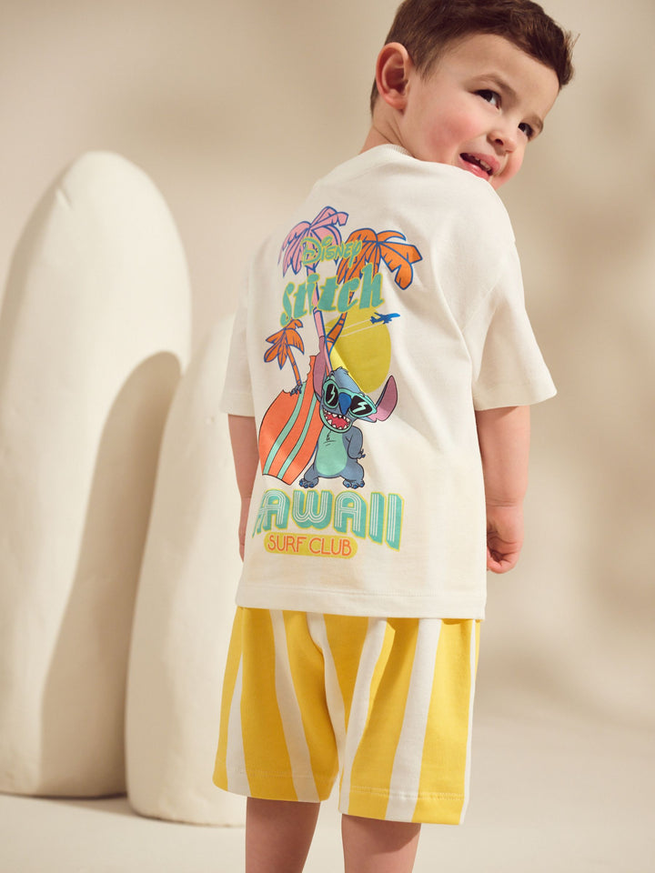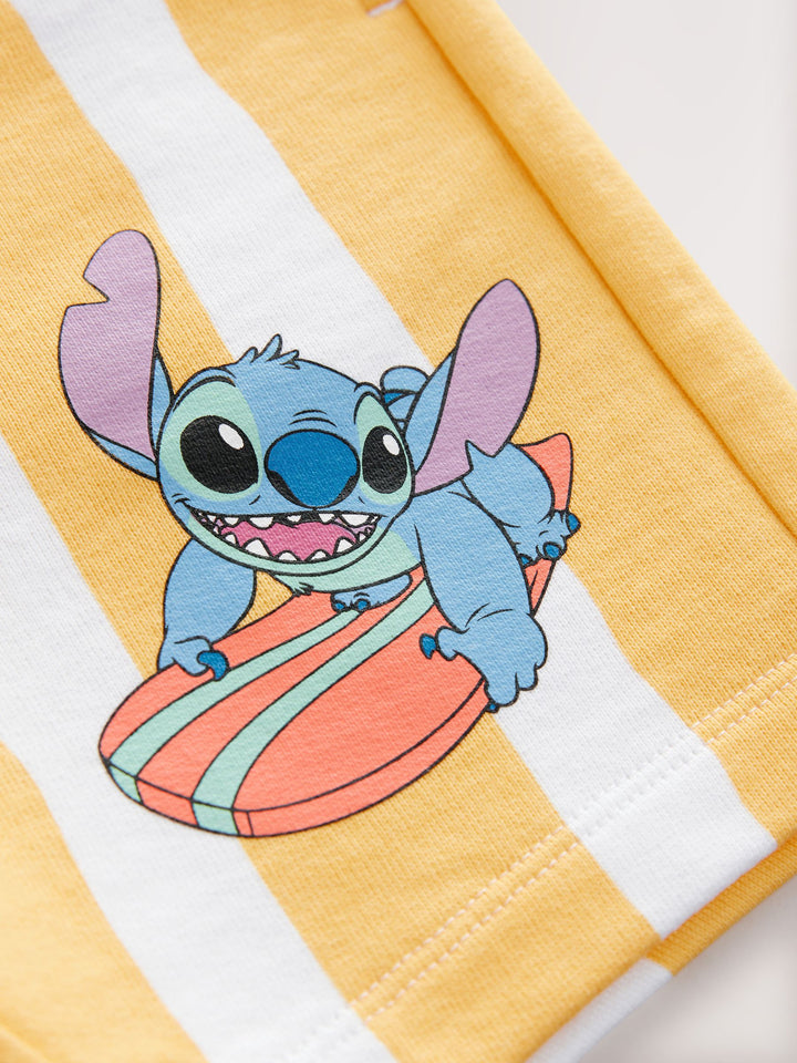 Bright, fun and full of character. this 2-piece set features a pure-cotton t-shirt with a Lilo & Stitch chest and back print, alongside a pair of yellow striped shorts with a surfboarding Stitch to the thigh, side pockets and an elasticated waistband. 2-piece set 100% cotton Lilo & Stitch chest and back print Striped shorts Thigh print Elasticated waistband Machine washable. T-shirt and Shorts 100% Cotton. Country of Origin: Bangladesh