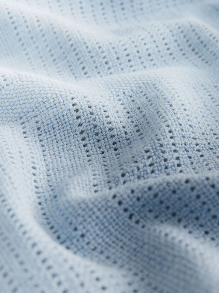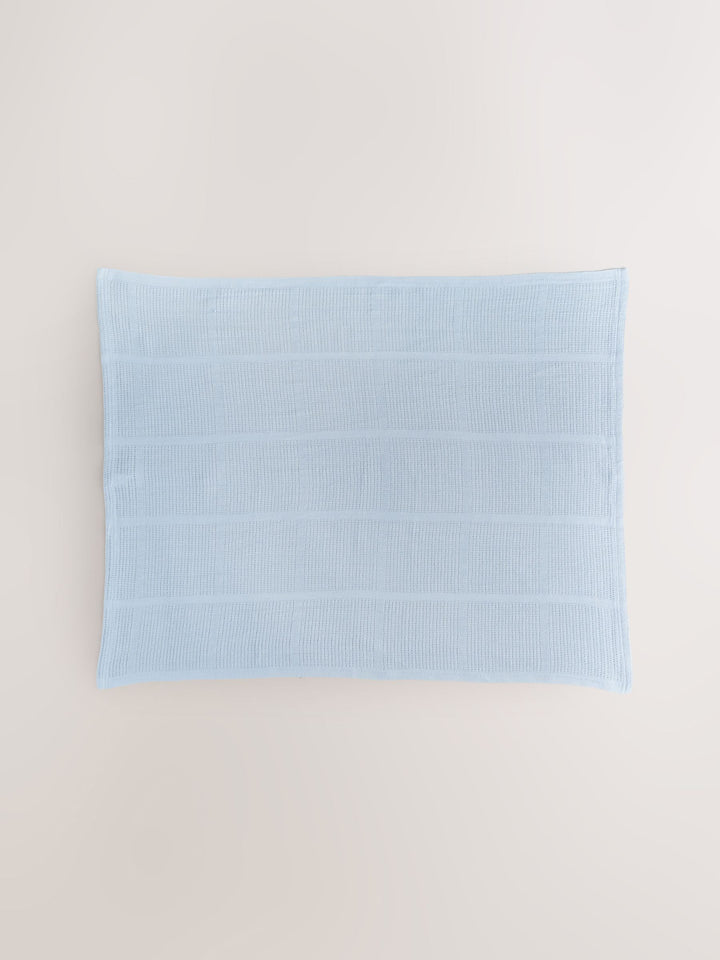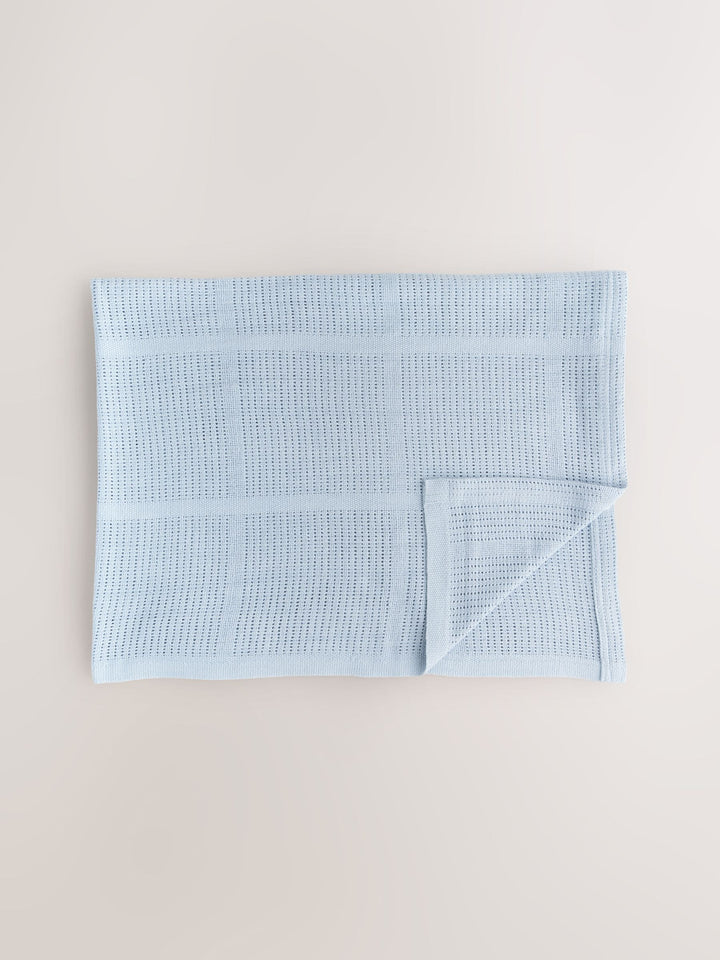 In a handy 2-pack, these blue pure cotton cellular blankets are perfect for keeping your little one comfortable and cosy, with a breathable knitted design presented with a branded NEXT ribbon. 2-pack 100% cotton Loose weave Machine washable. 2 x Blanket 100% Cotton. Country of Origin: Pakistan Warning: Keep away from fire and flames.