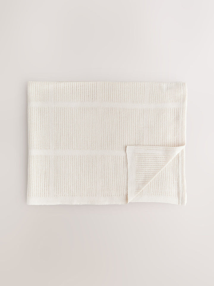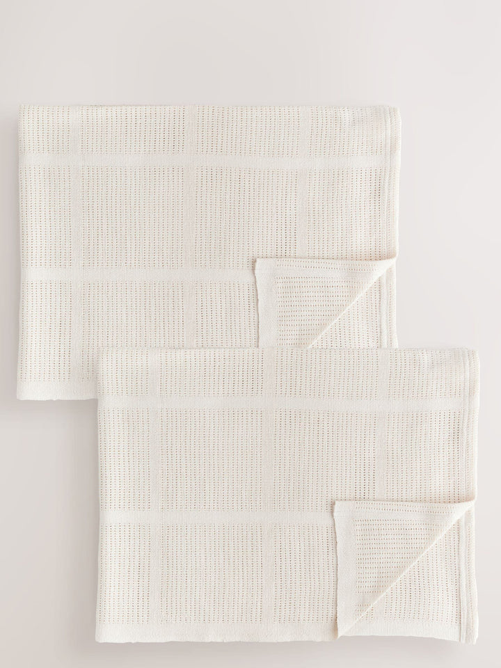 In a handy 2-pack, these pure cotton natural cellular blankets are perfect for keeping your little one comfortable and cosy, with a breathable knitted design presented with a branded NEXT ribbon. 2-pack 100% cotton Loose weave Machine washable. 2 x Blanket 100% Cotton. Country of Origin: Pakistan Warning: Keep away from fire and flames.