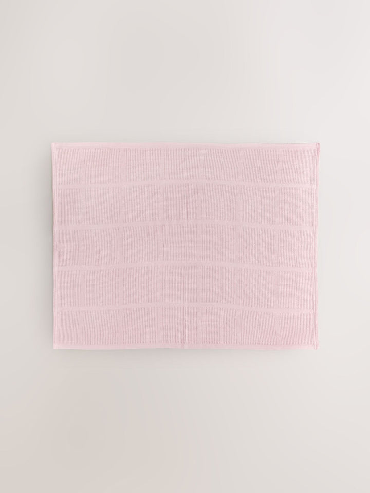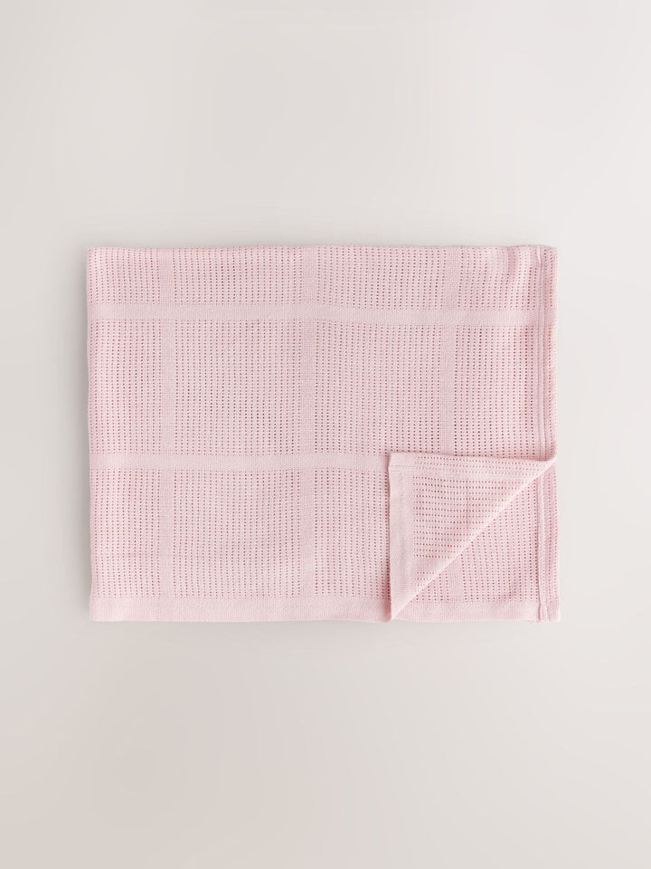 In a handy 2-pack, these pink pure cotton cellular blankets are perfect for keeping your little one comfortable and cosy, with a breathable knitted design presented with a branded NEXT ribbon. 2-pack 100% cotton Loose weave Machine washable. 2 x Blanket 100% Cotton. Country of Origin: Pakistan Warning: Keep away from fire and flames.