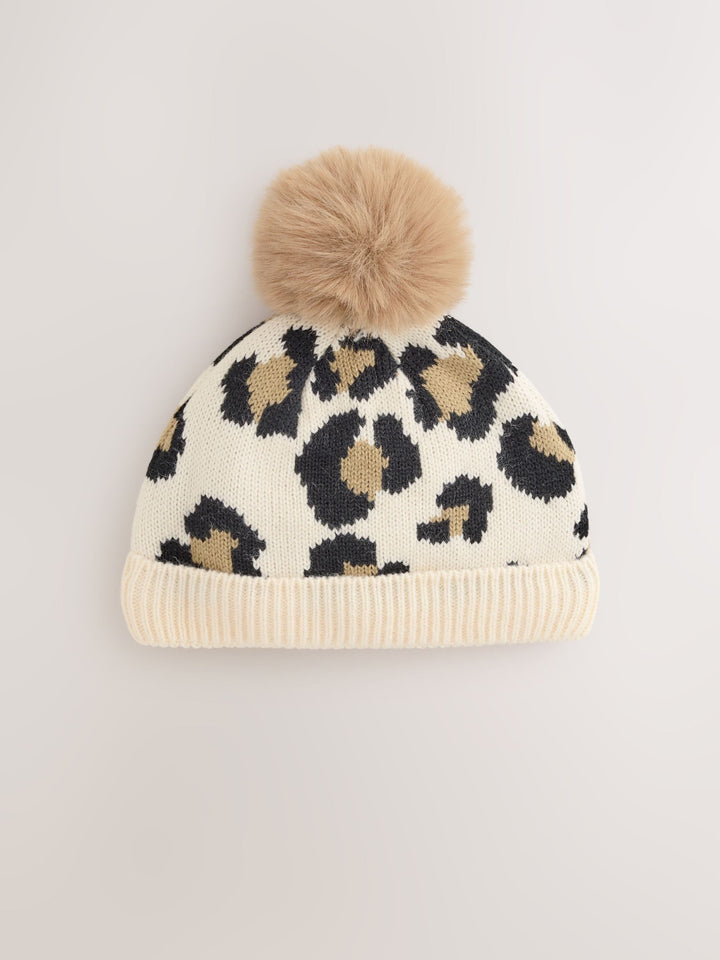 Animal Baby Print Knitted Pom Hat (0mths-2yrs)